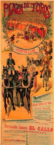 PUERTOLLANO, PLAZA DE TOROS. 1896. 257x100cm. (101,3x39,5in.). Litografía. B-. Algunas roturas y faltas de papel perifericas, falta una pequeña parte del texto inferior. Entelado.