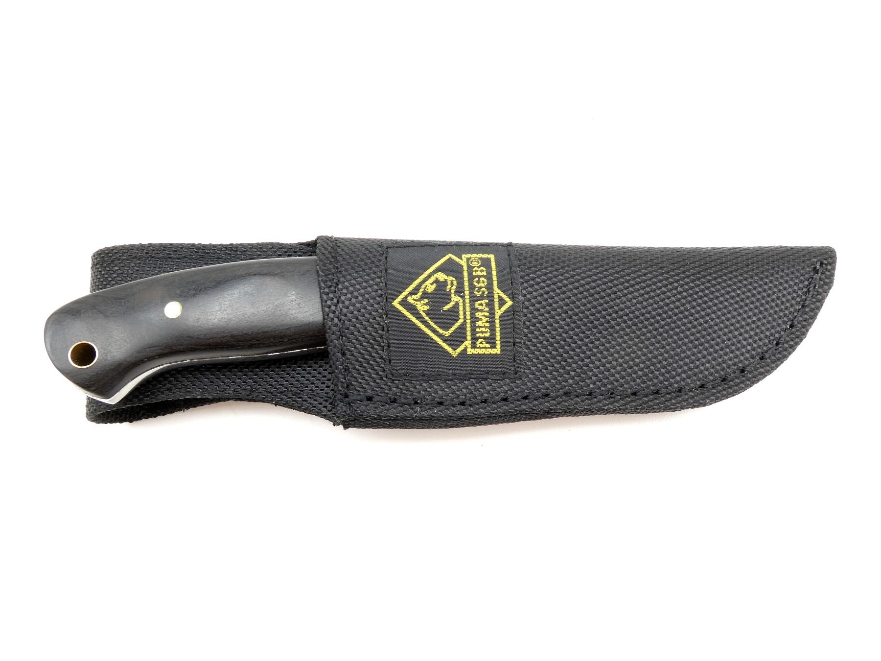 (1) FIXED BLADE KNIFE, MARKED: "PUMA SGB, SGB SP DROP 6561000, GERMAN STEEL 14/RC", 2-PIECE WOOD HANDLE WITH PUMA SGB EMBLEM, INCLUDES BLACK NYLON SHEATH, MARKED: "PUMA SGB", APPEARS NOS, WITH ORIGINAL BOX, BLADE APPROX. 3" & OAL APPROX. 7.25". SEE PHOTOS.