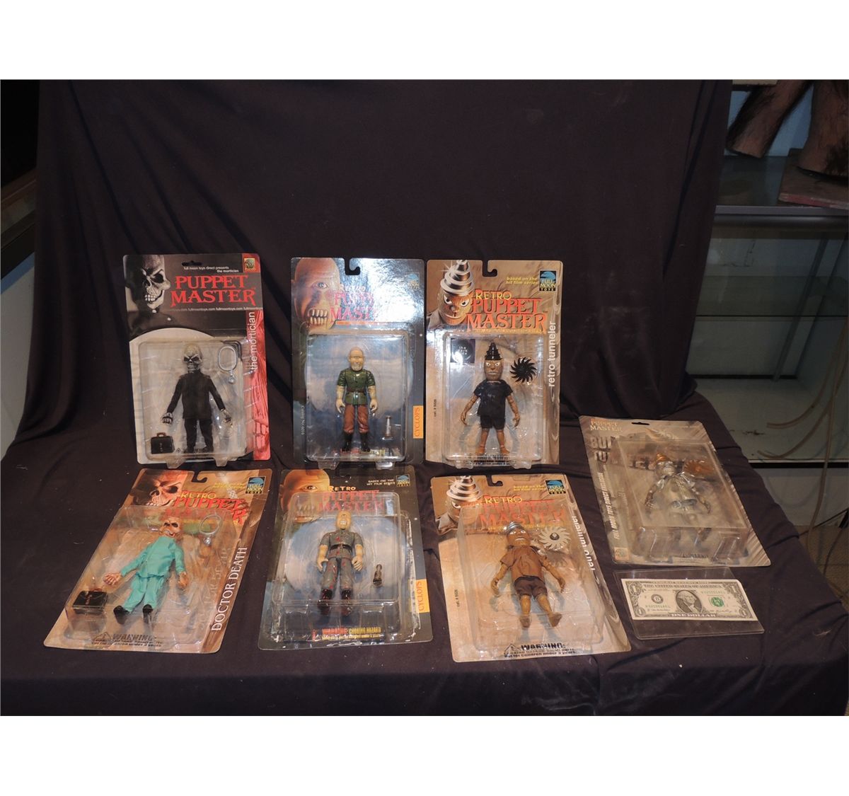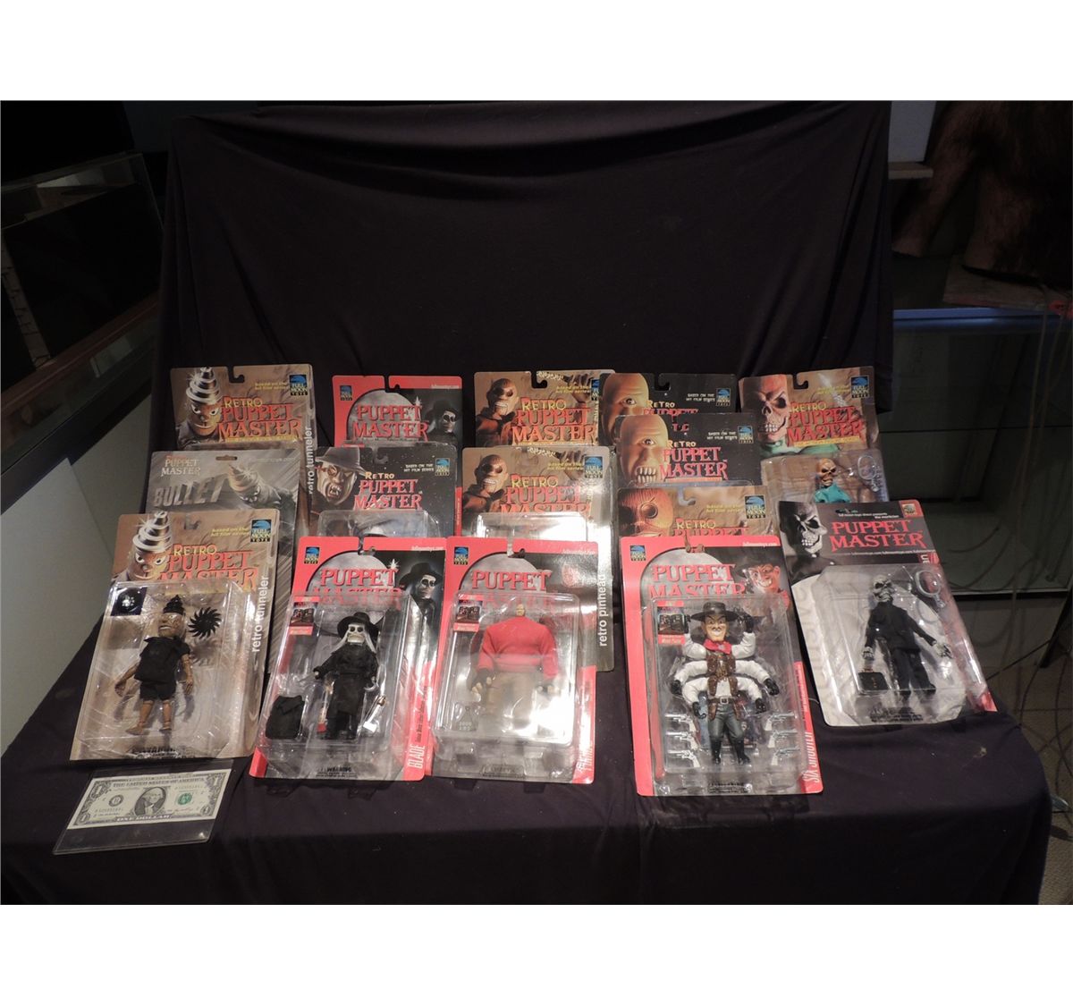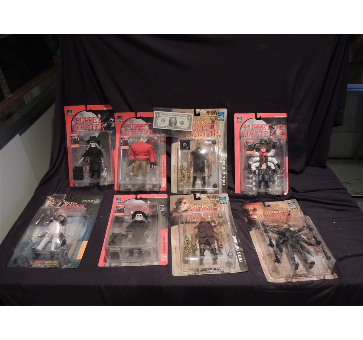 This is a huge lot of 15 PUPPET MASTER toys. Only one duplicate which is a blade. All are still mint in the box. One plastic has separated.