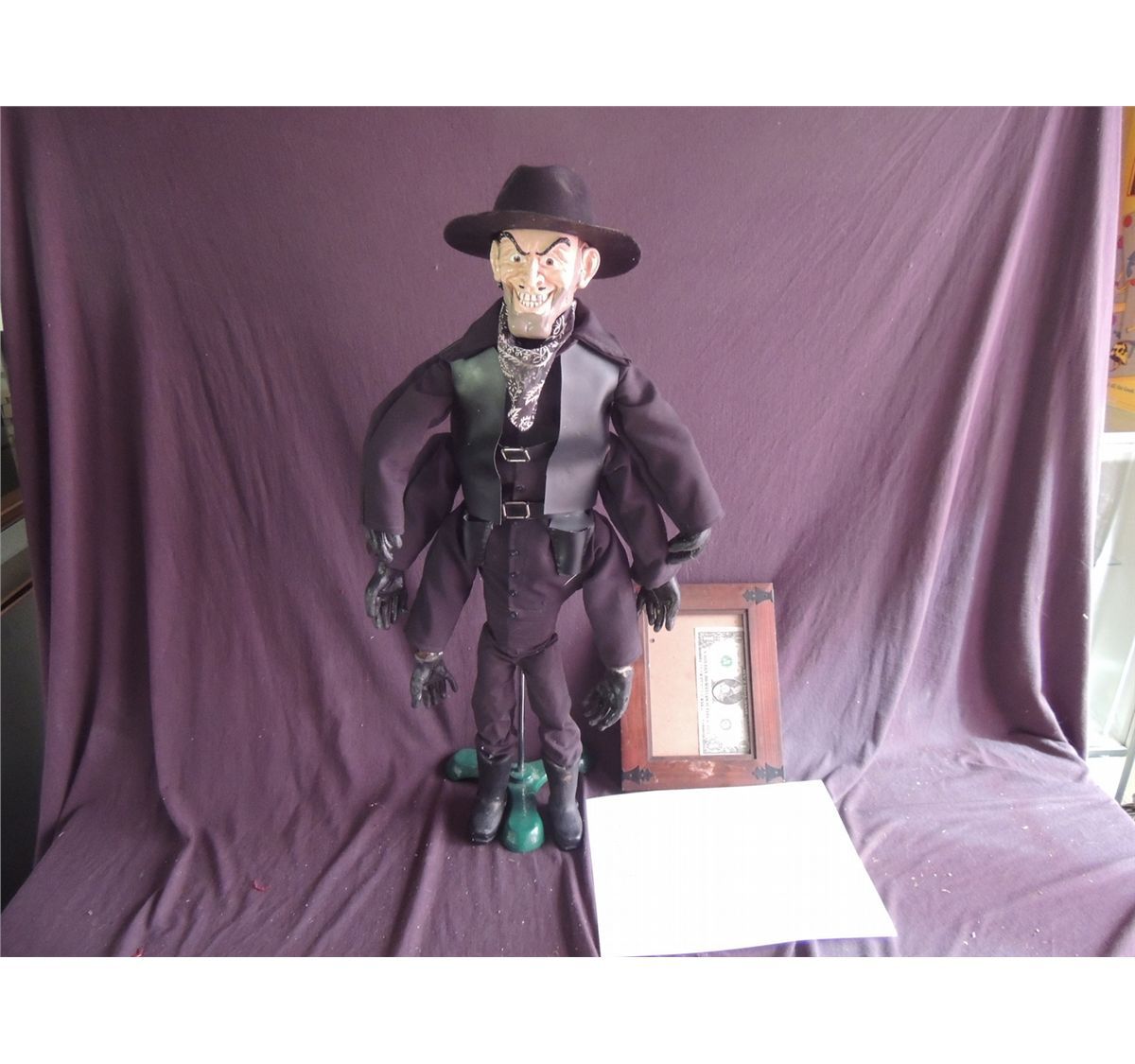 Offered here is the incredibly cool and complete Hero SIX SHOOTER rod puppet SCREEN USED & MATCHED in the very last PUPPET MASTER film, AXIS RISING! The Hip Holsters and guns are missing, but intact otherwise. Makes an absolutely incredible display! This is SCREEN MATCHED because it is the only one made for the film.