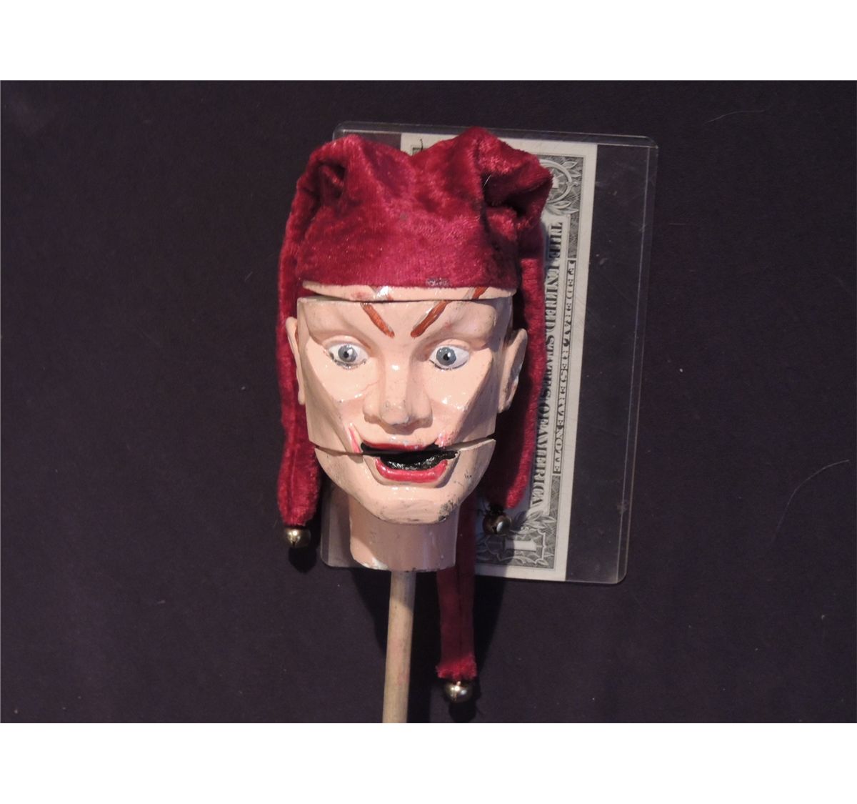 This is the incredibly cool Hero spinning smiling Jester puppet head used throughout PUPPET MAST 10, AXIS RISING. It is Screen Matched to close up scenes because this is the only working Hero smiling Jester puppet head made for the film. This worked using a drill to spin the center section only.