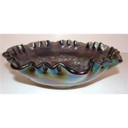 Purple amethyst carnival glass windmill pattern ruffled edge bowl. 8" Dia.