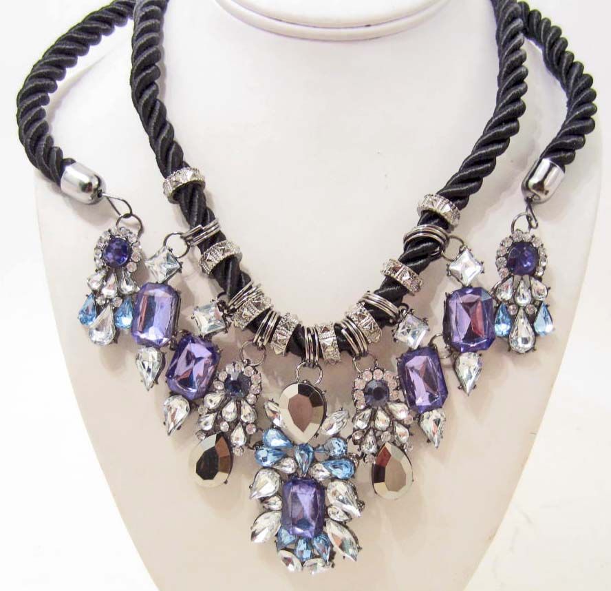 PURPLE AND BLUE RHINESTONE ESTATE JEWERLY NECKLACE
