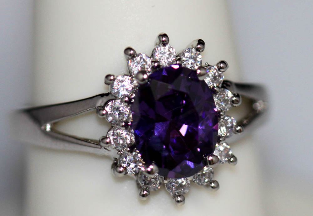 PURPLE ANF CLEAR CZ SILVER PLATED RING **|**|** PURPLE ANF CLEAR CZ SILVER PLATED RING