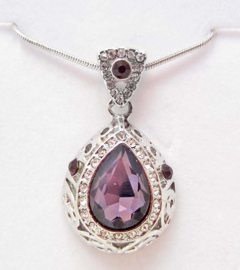 Tear drop shaped pendant hang down 2-1/2" Adjustable length chain measures approx 16-18" long.