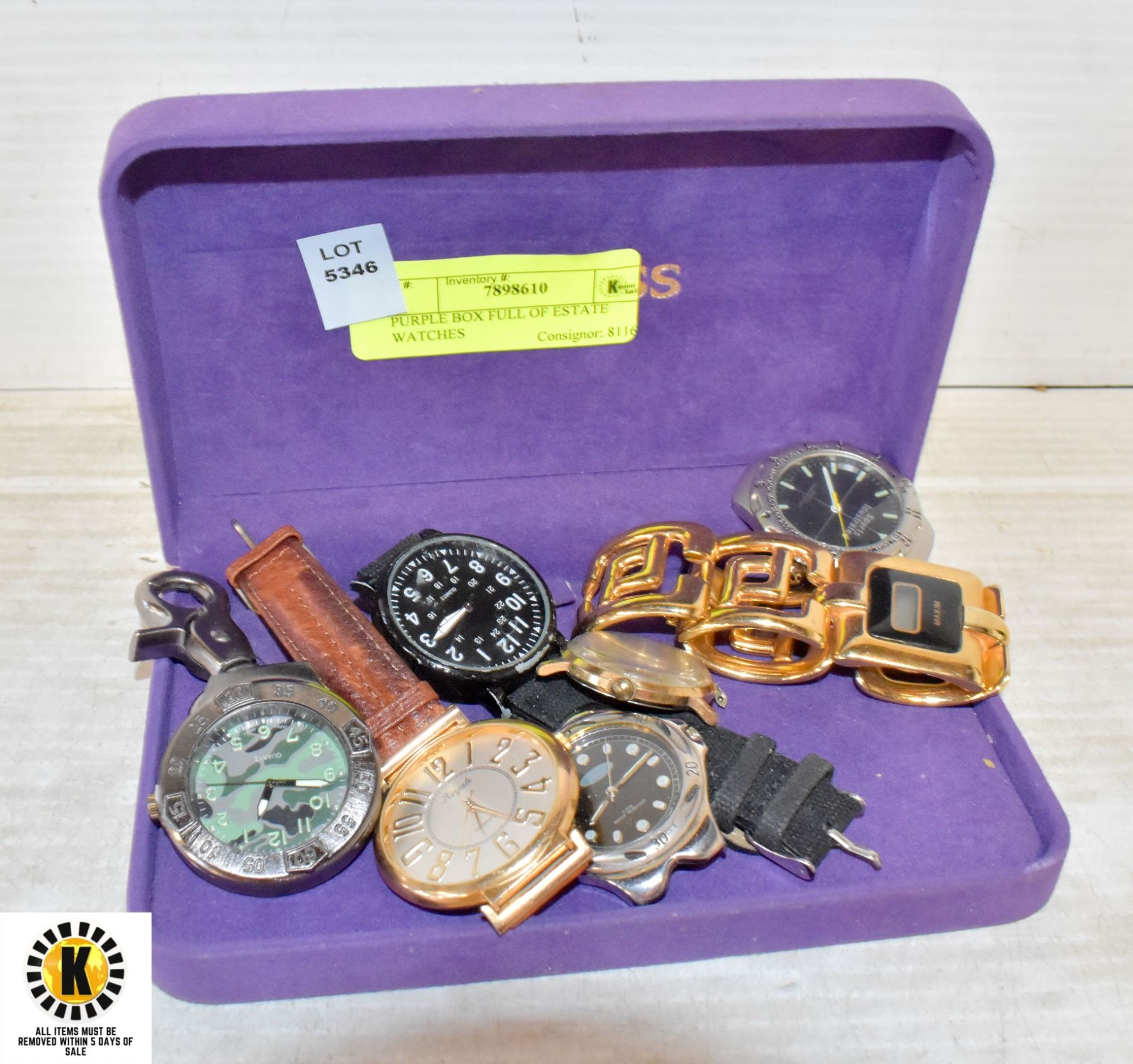 PURPLE BOX FULL OF ESTATE WATCHES