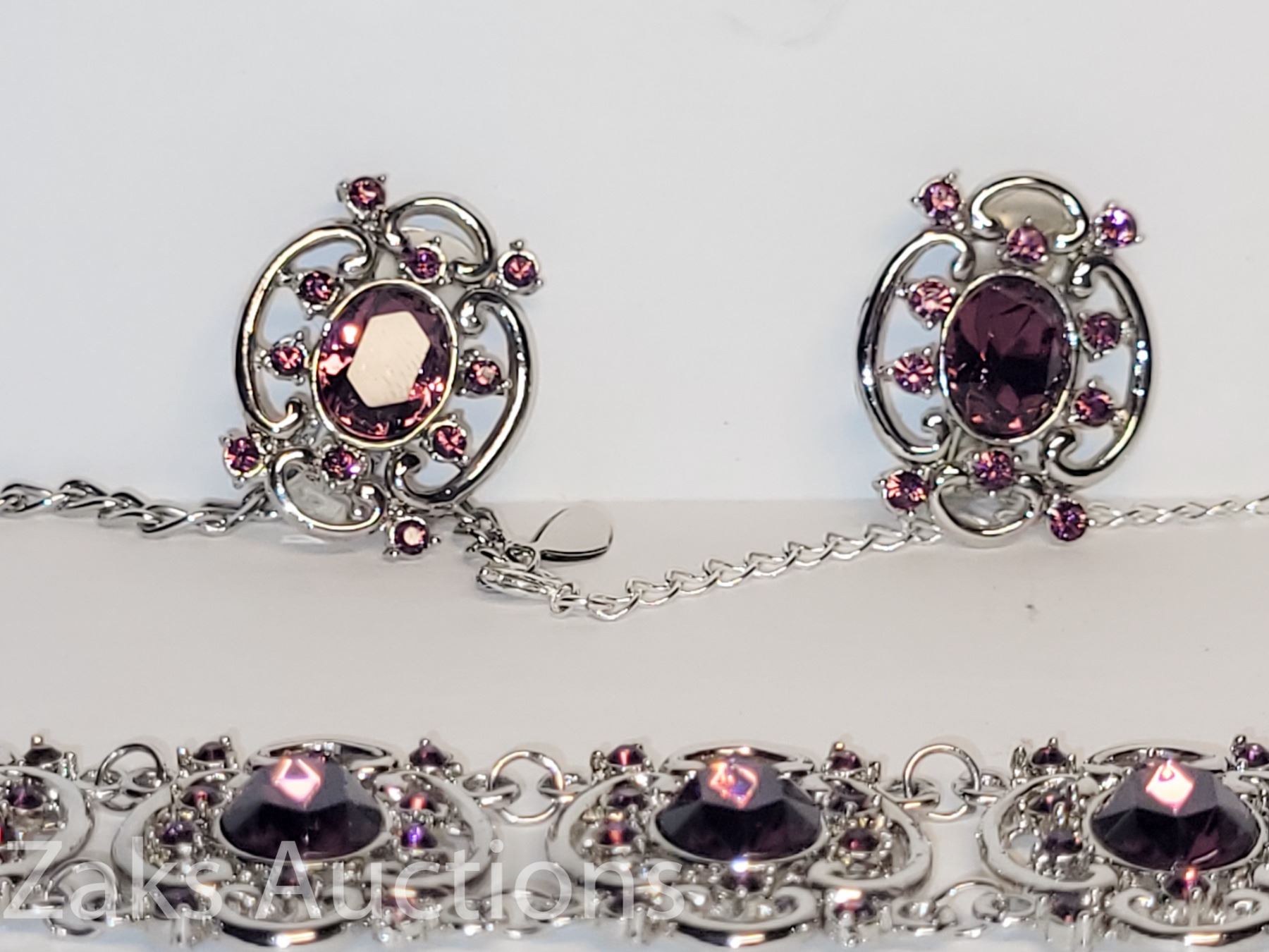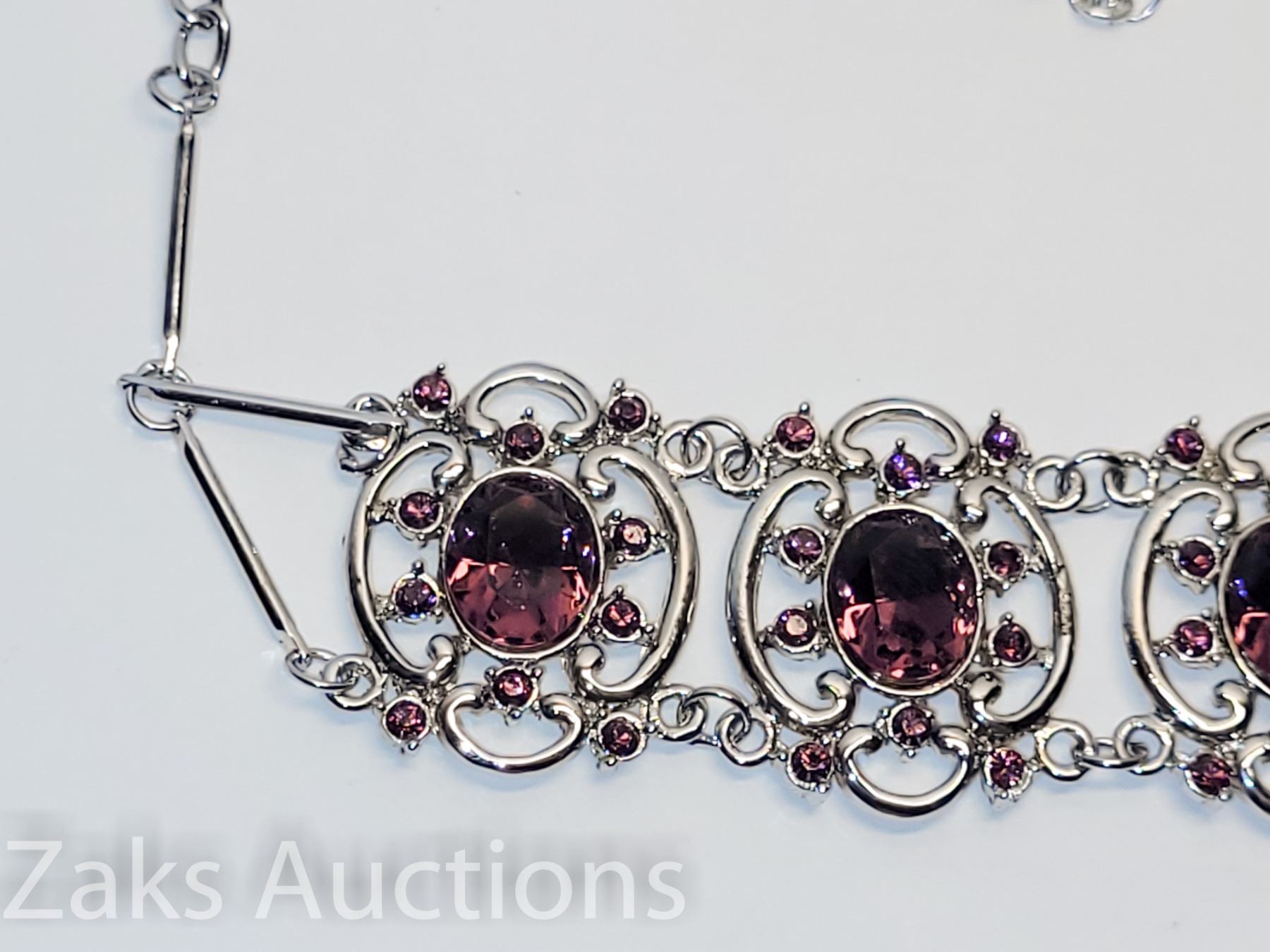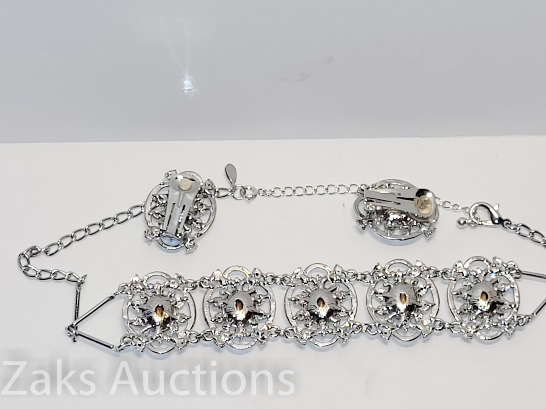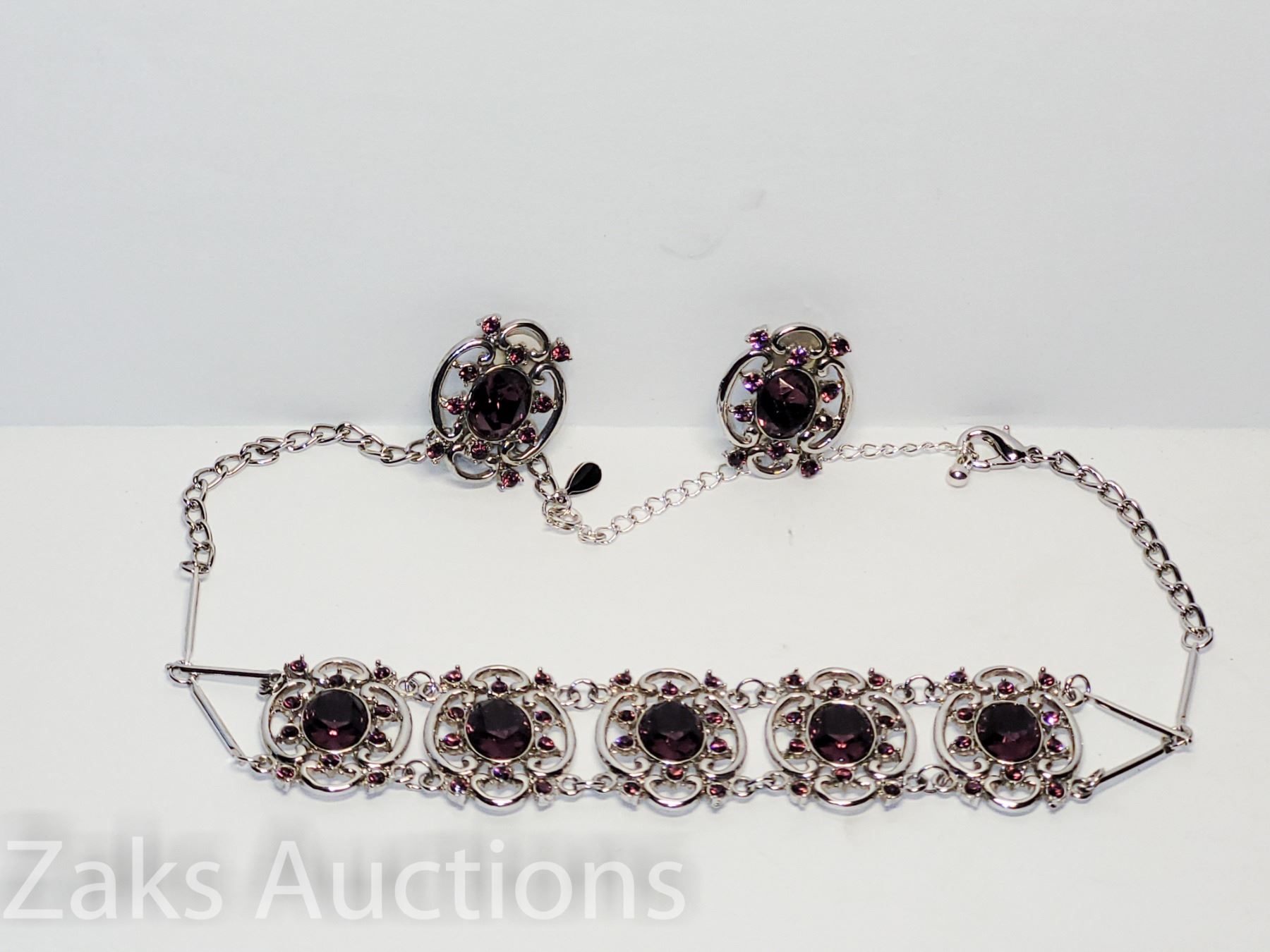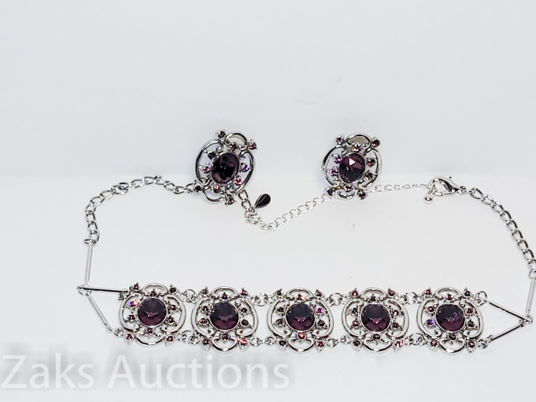 NICE BIG STONE SETTING. IS A CHOKER AND IT COMES WITH AN EXTENDER. EARRINGS ARE CLIP ON