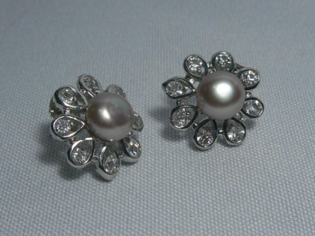 PURPLE PEARL FLOWER CZ EARRINGS; **|**|** PURPLE PEARL FLOWER CZ EARRINGS; ; MSRP: $300