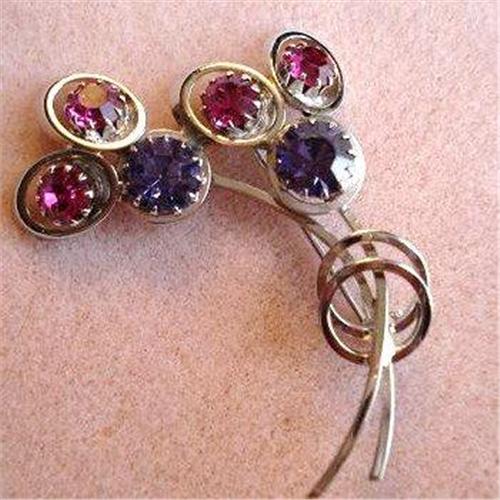 <tr><td>Title:PURPLE & PINK RHINESTONE BROOCH</td></tr>