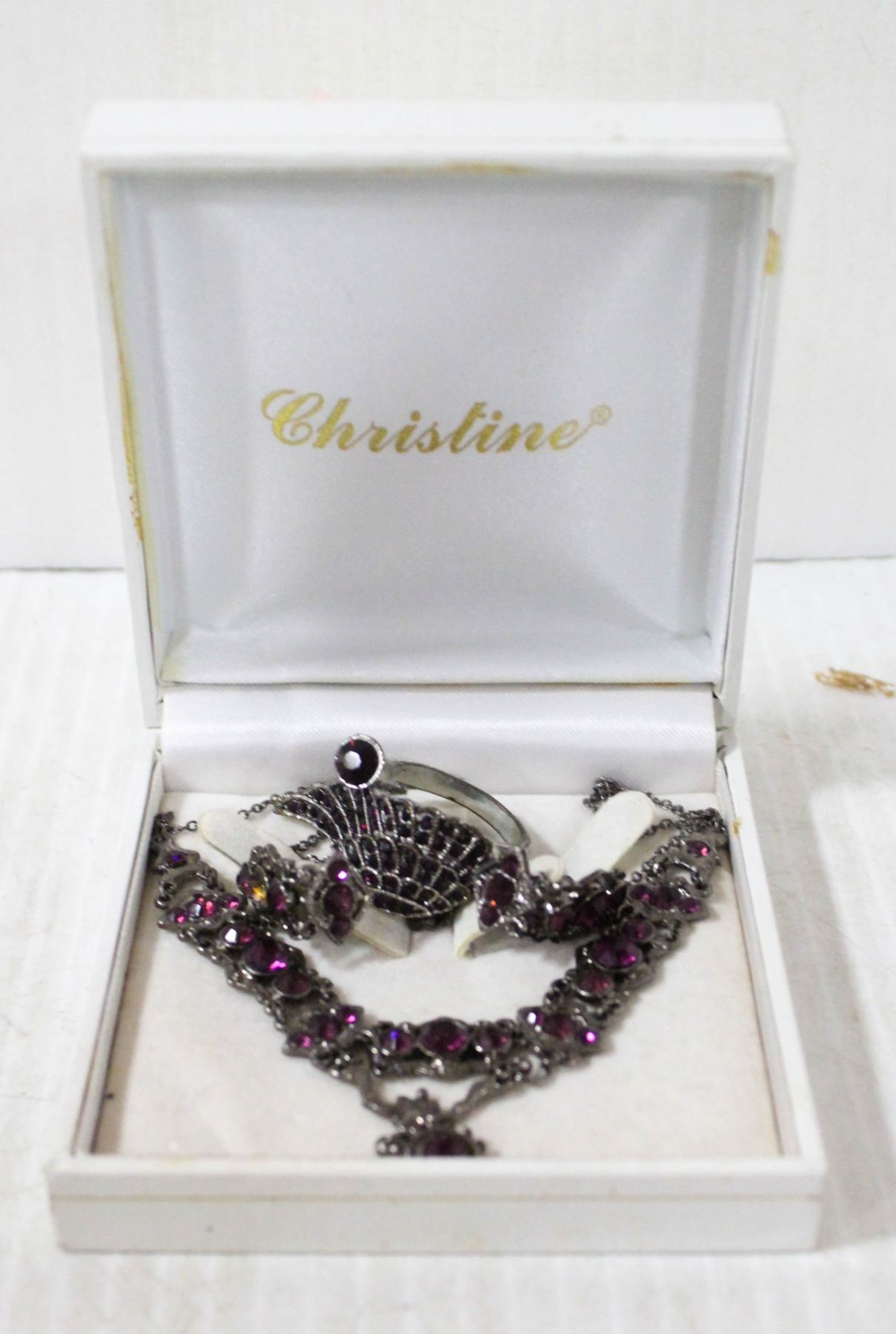 PURPLE STONE COSTUME JEWELLERY SET IN BOX