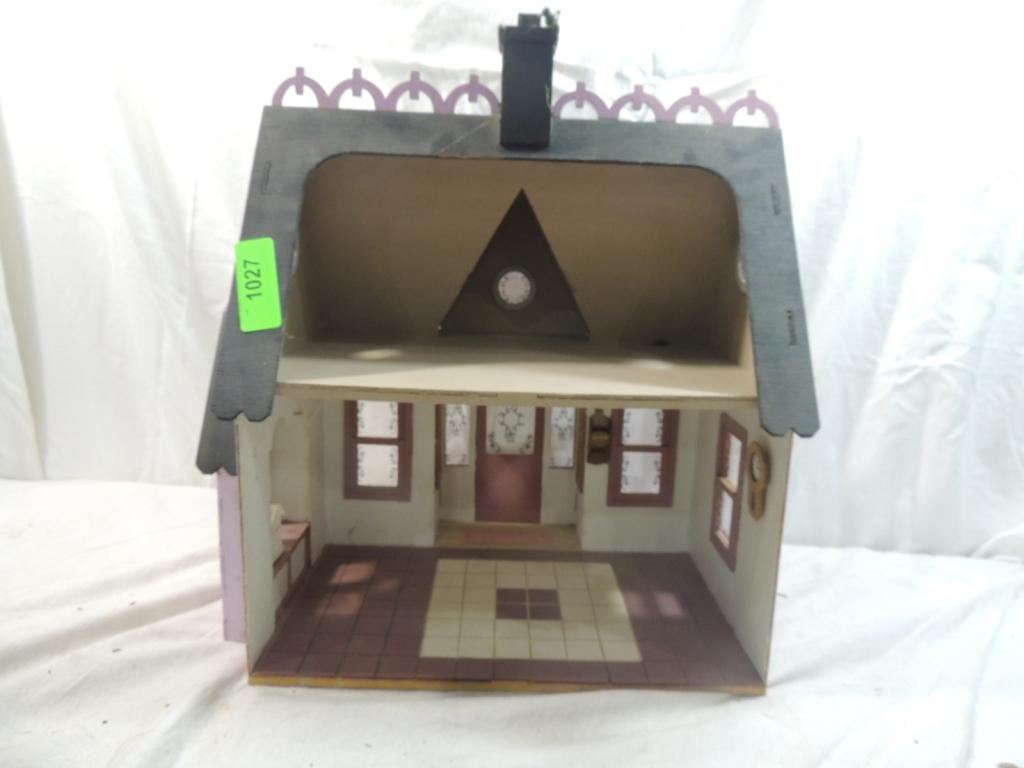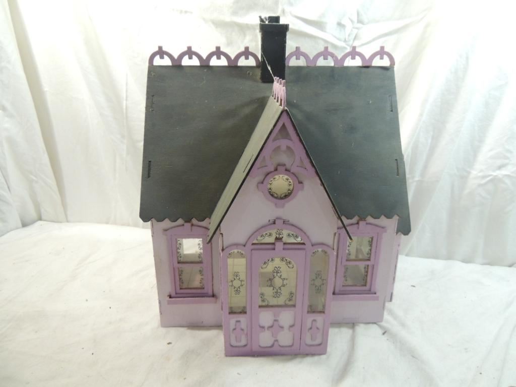 PURPLE DECORATIVE VICTORIAN STYLE WOODEN DOLLHOUSE, DECORATIVE DOLLHOUSE, COLLECTIBLE DOLLHOUSE ,AS SHOWN SEE PHOTO FOR MORE DETAILS.