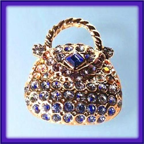 PURSE PIN BROOCH IS DIPPED IN 24K GOLD, THEN LOADED WITH GENUINE, EXPENSIVE SWAROVSKI CRYSTALS FROM AUSTRIA TO CREATE THIS SPARKLING HANDBAG
