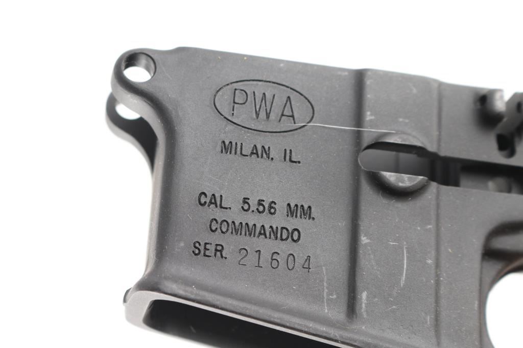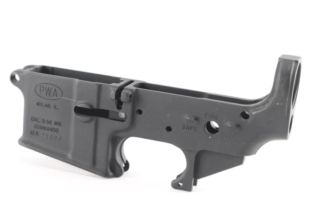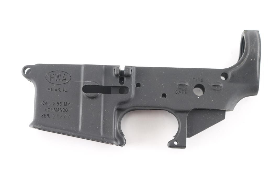 Stripped lower receiver only for AR15 type rifle. Used, shows signs of handling and storage, with 95% matte black parkerized finish remaining, some small dings & edge losses. Trigger & hammer pin holes appear a bit oversized for standard pins, retain dark finish inside the holes.
