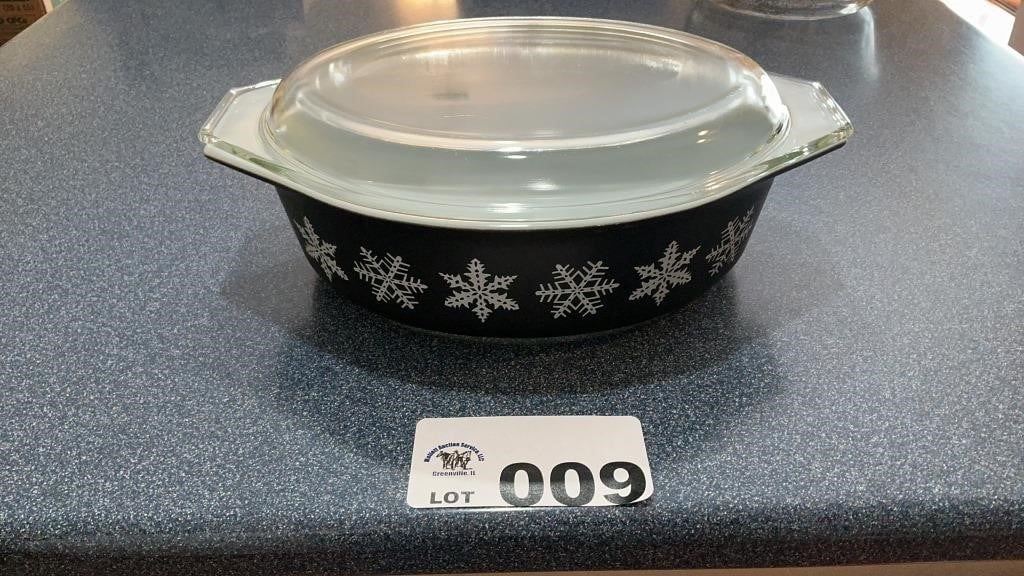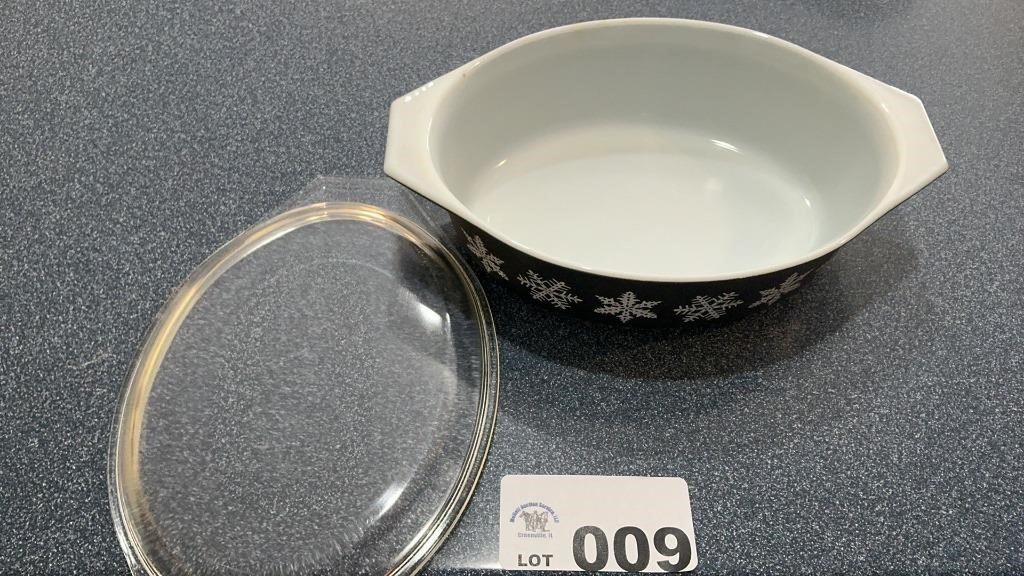 PYREX CASSEROLE BLACK SNOWFLAKE DISH W LID