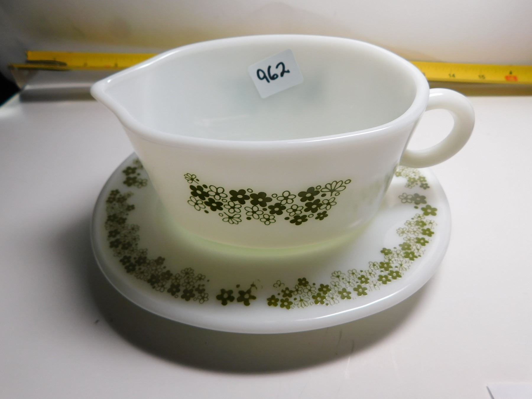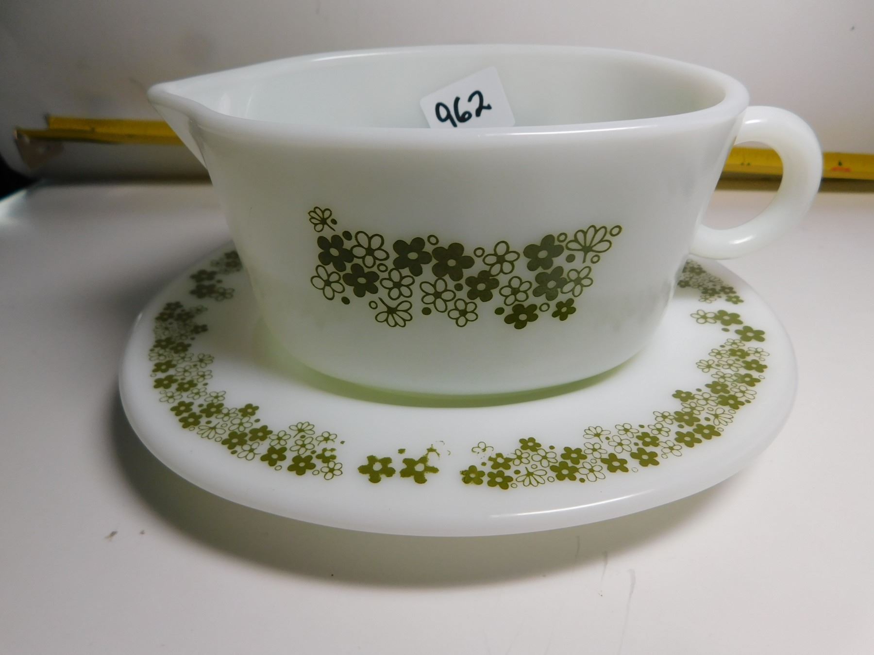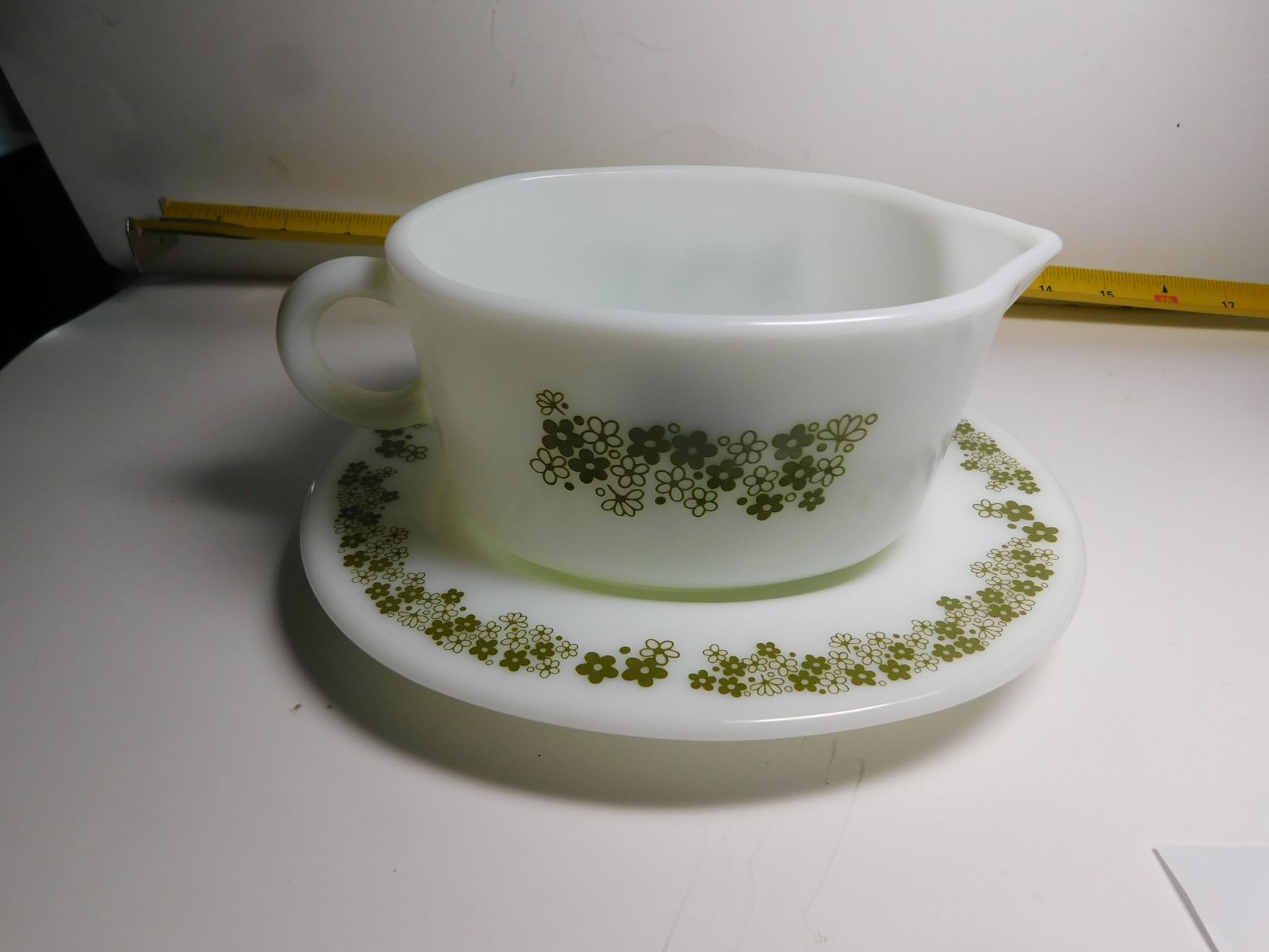 PYREX CRAZY DAISY GRAVY BOAT AND UNDERPLATE