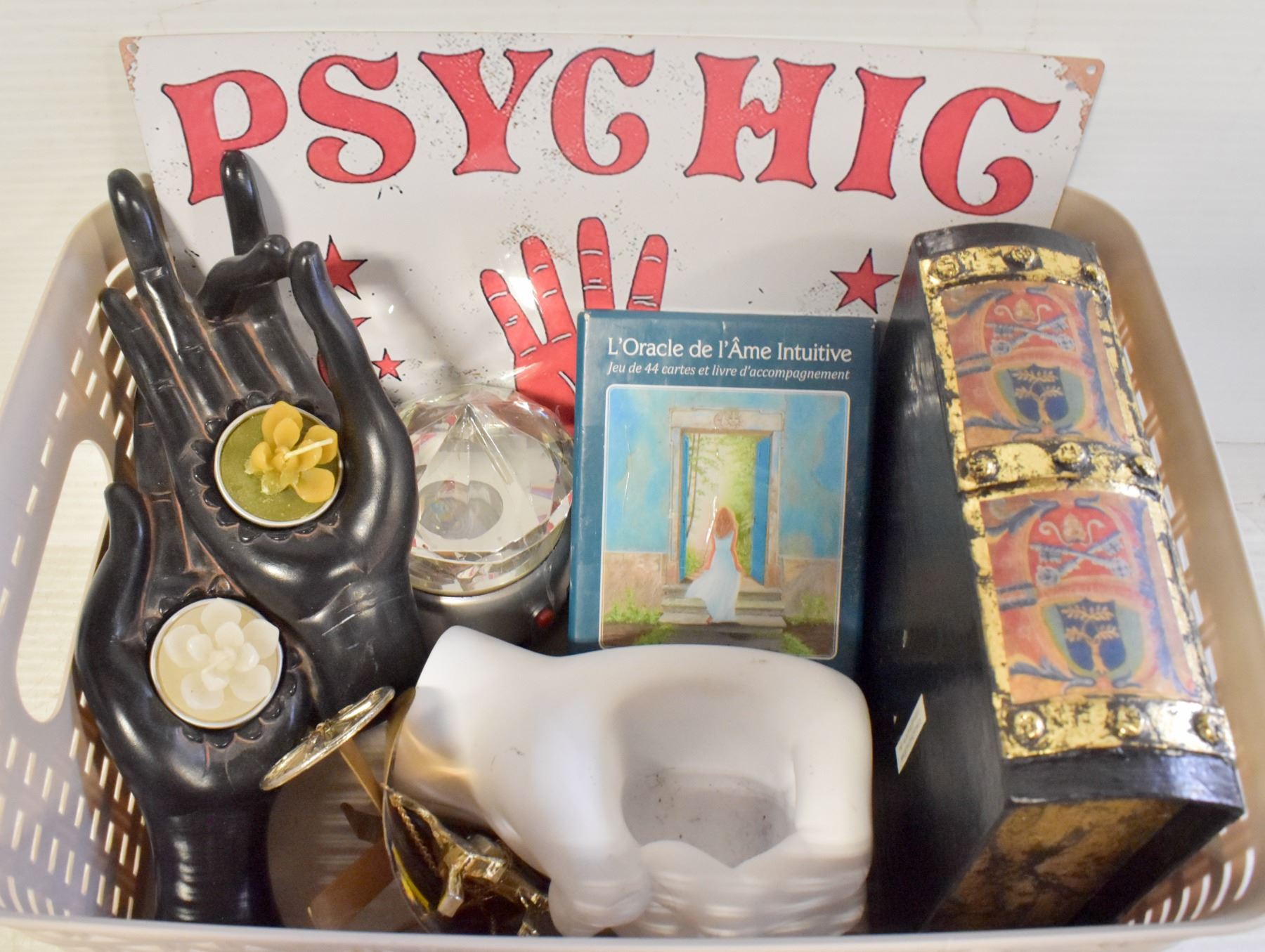 PYSCHIC TIN SIGN, LIGHTED CRYSTAL, TAROT,HANDS &