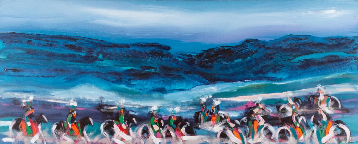 Pablo Antonio Milan (1961 - ). Night Ride. 32" x 80" oil on canvas, gallery wrapped. Signed lower right.