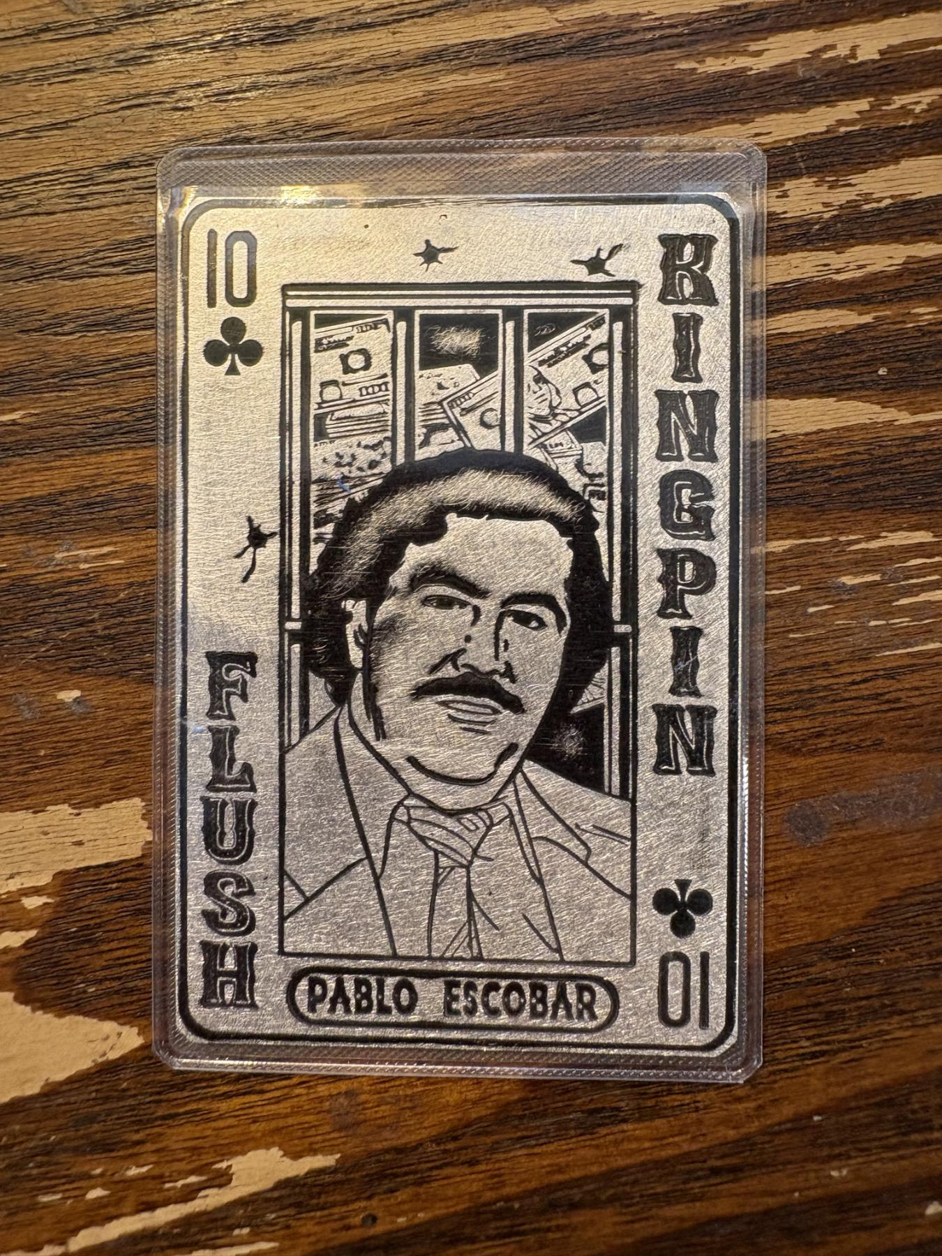 Pablo Escobar 1 Troy Oz Silver Card - 10 of Clubs - Kingpin Flush Series 322/350 - STL Mint