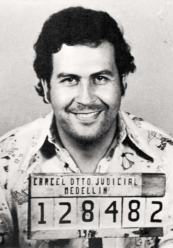 Colombian Pablo Emilio Escobar Gavira, leader of one of the largest cocaine processing and distributing organizations in the world, was shot to death in December 1993 by a special force of police officers. He was first arrested on drug charges by Colombian authorities in June of 1976. 8 x 10 inches. This is a photo of the mugshot
