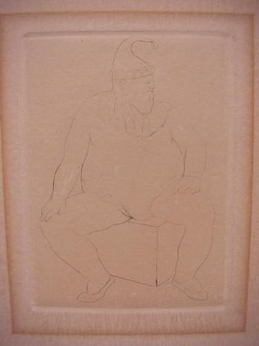 SALTIMBANQUE AU REPOS (B.19), etching with beveled plate, from the edition after the steel facing, image 4 ¾ x 3 3/8” with margins, sheet 7 ¾ x 5 ¾”, framed with glass, mat stains, old tape remains and some skinning on the verso, discoloration. $2000/3000