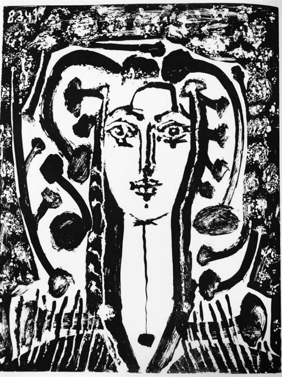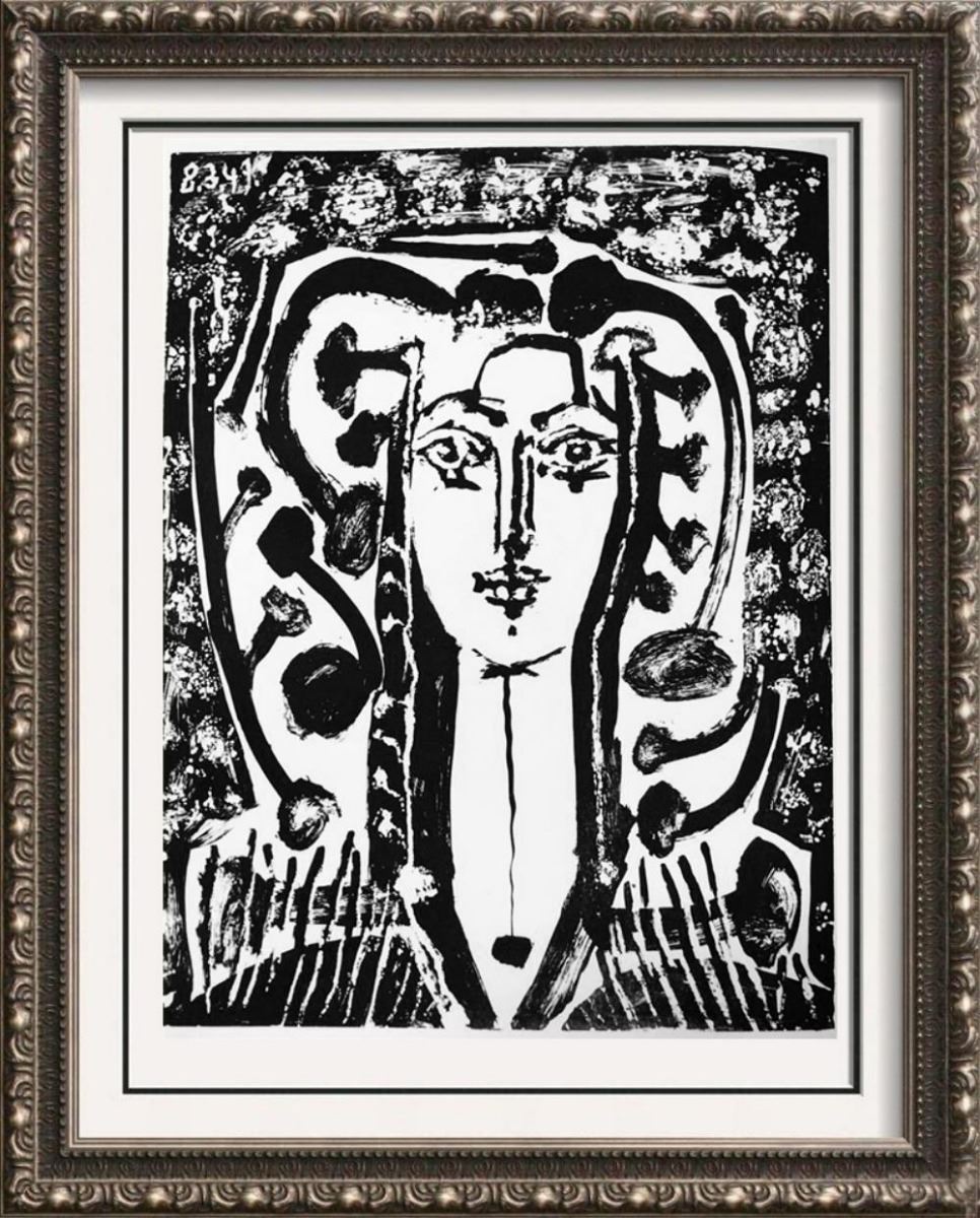 Artist Name: Pablo Picasso | Title of Art: (Plate One Hundred Thirty Eight) Bust 'Modern Style' c. 1949 | Medium: High Quality Double-Sided Fine Art Book Plate | Unsigned | Image Size: Approx 10 x 8 | Paper Size 11 x 8 | Offered Unframed: Framing presentation if shown is for concept only | If you need assistance with custom framing, call the experts at ArtForSale | Circa 1955 | Published in Germany by Verlag Gerd Hatje, Stuttgart. Printed in Germany and Switzerland