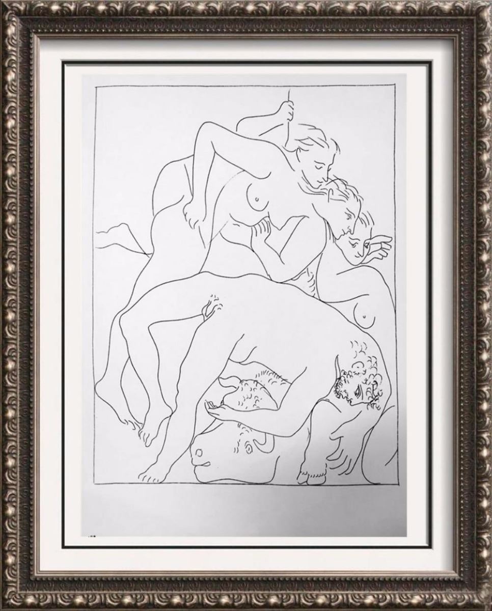 Artist Name: Pablo Picasso | Title of Art: (Plate Forty Eight ) Death of Orpheus c. 1930 | Medium: High Quality Double-Sided Fine Art Book Plate | Unsigned | Image Size is Same Size as Original: Approx 10 x 8 | Paper Size 11 x 8 | Offered Unframed: Framing presentation if shown is for concept only | If you need assistance with custom framing, call the experts at ArtForSale | Circa 1955 | Published in Germany by Verlag Gerd Hatje, Stuttgart. Printed in Germany and Switzerland
