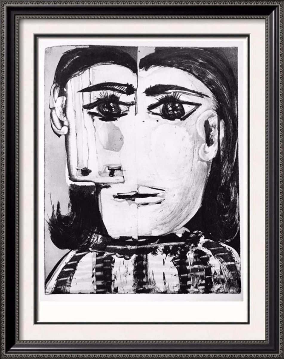 Artist Name: Pablo Picasso | Title of Art: (Plate One Hundred Five ) Head of a Woman V c. 1939 | Medium: High Quality Double-Sided Fine Art Book Plate | Unsigned | Image Size: Approx 10 x 9 | Paper Size 11 x 8 | Offered Unframed: Framing presentation if shown is for concept only | If you need assistance with custom framing, call the experts at ArtForSale | Circa 1955 | Published in Germany by Verlag Gerd Hatje, Stuttgart. Printed in Germany and Switzerland