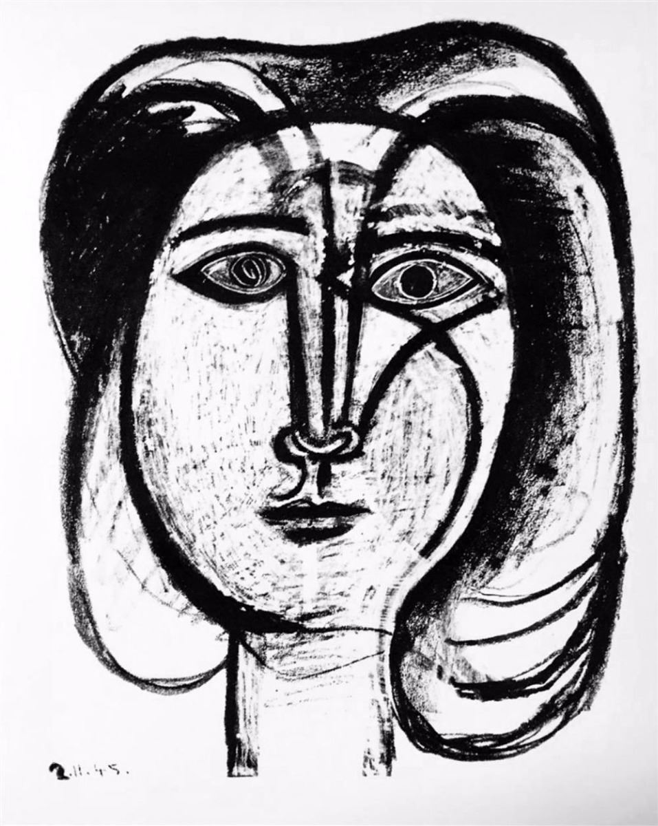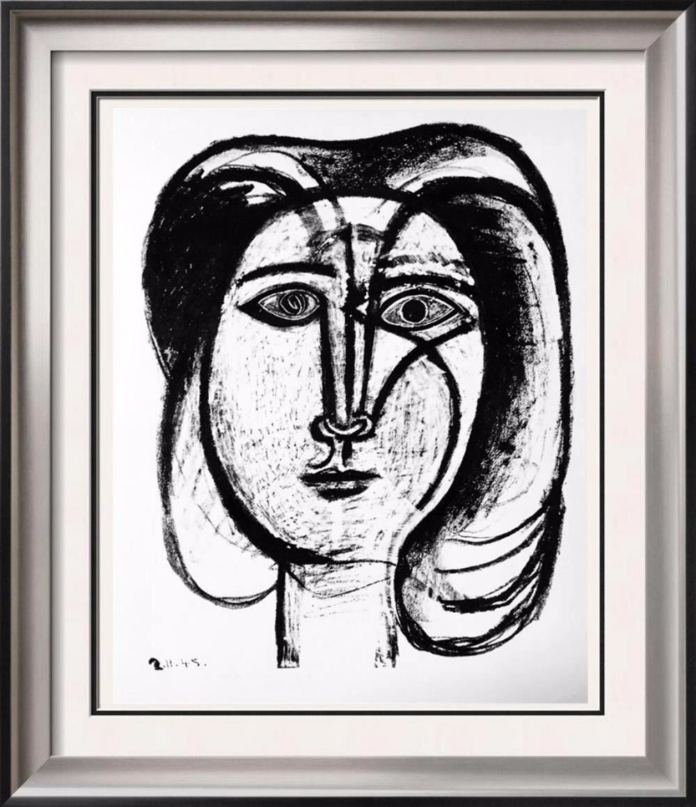 Artist Name: Pablo Picasso | Title of Art: (Plate One Hundred Seventeen ) Head of a Woman c. 1945 | Medium: High Quality Double-Sided Fine Art Book Plate | Unsigned | Image Size: Approx 10 x 9 | Paper Size 11 x 8 | Offered Unframed: Framing presentation if shown is for concept only | If you need assistance with custom framing, call the experts at ArtForSale | Circa 1955 | Published in Germany by Verlag Gerd Hatje, Stuttgart. Printed in Germany and Switzerland