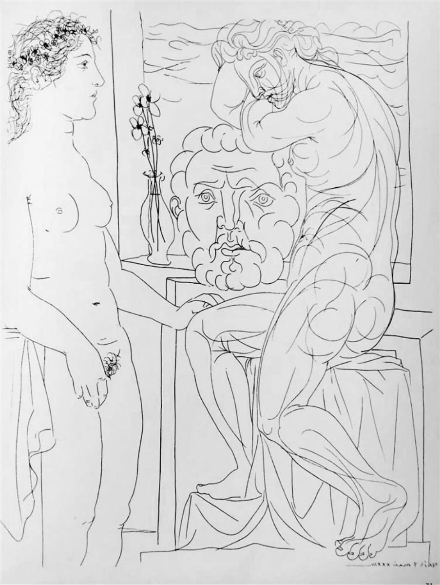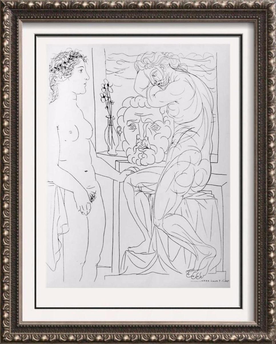 Artist Name: Pablo Picasso | Title of Art: (Plate Seventy Three ) Nude and Two Sculptures c. 1933 | Medium: High Quality Double-Sided Fine Art Book Plate | Unsigned | Image Size: Approx 10 x 8 | Paper Size 11 x 8 | Offered Unframed: Framing presentation if shown is for concept only | If you need assistance with custom framing, call the experts at ArtForSale | Circa 1955 | Published in Germany by Verlag Gerd Hatje, Stuttgart. Printed in Germany and Switzerland