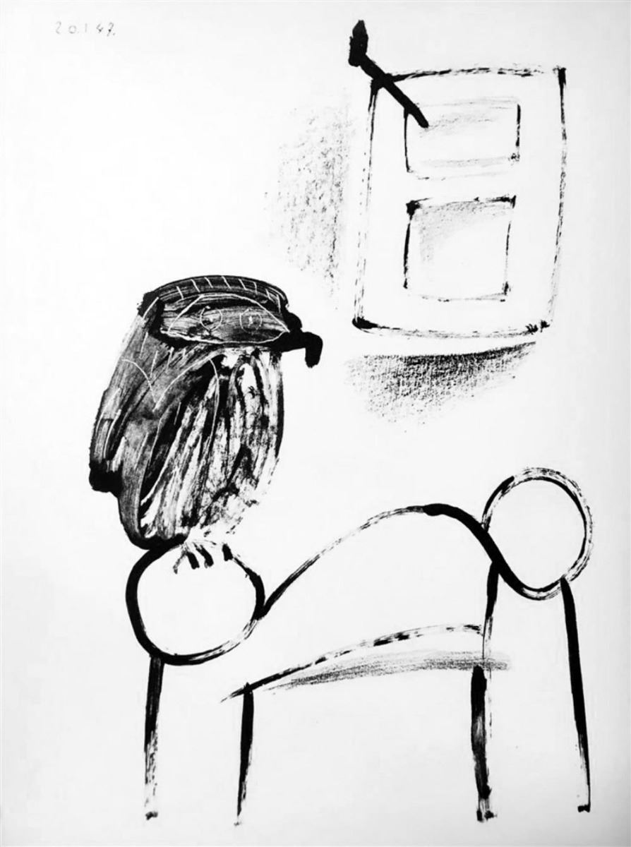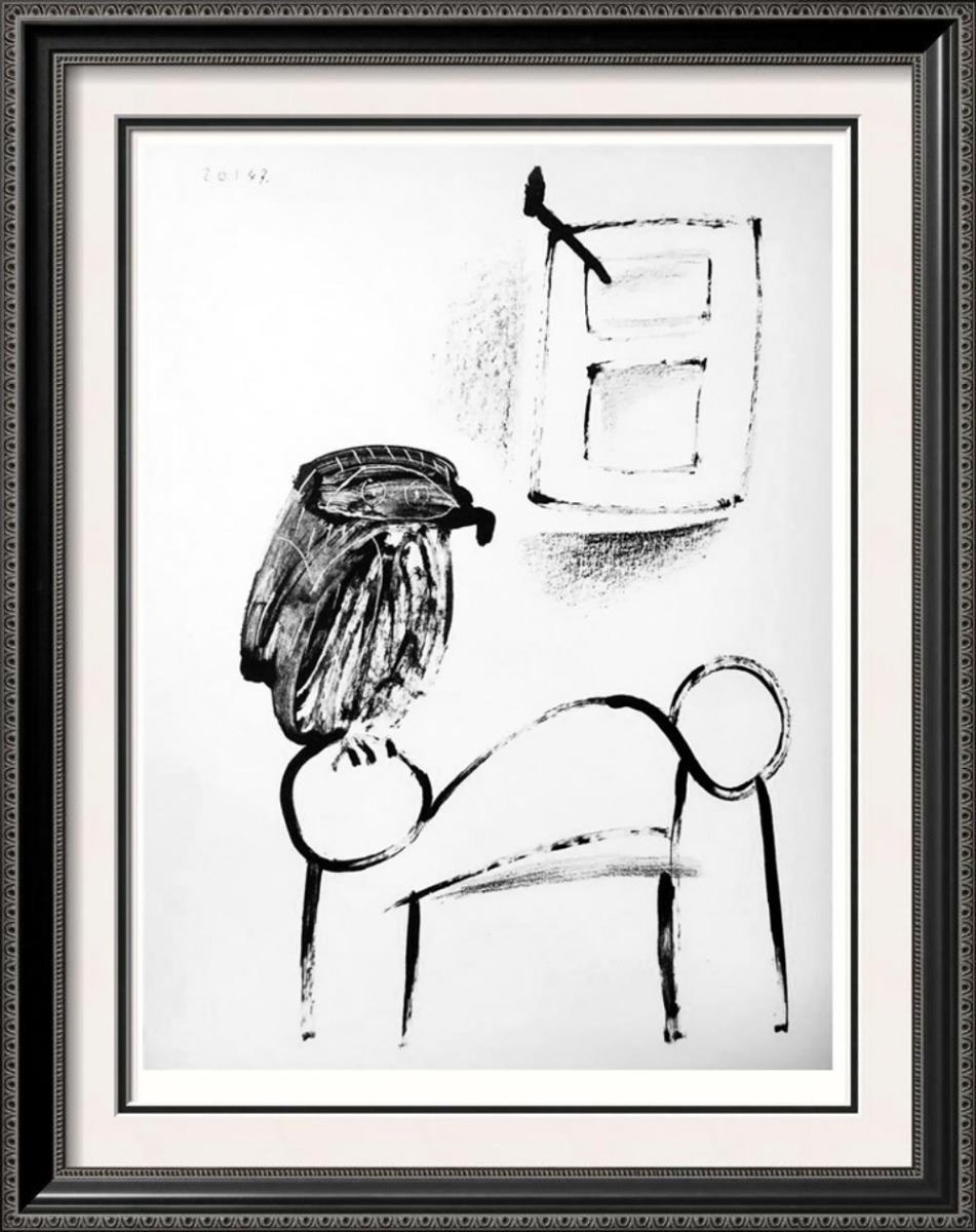 Artist Name: Pablo Picasso | Title of Art: (Plate One Hundred Thirty ) Owl on White Background c. 1947 | Medium: High Quality Double-Sided Fine Art Book Plate | Unsigned | Image Size: Approx 10 x 8 | Paper Size 11 x 8 | Offered Unframed: Framing presentation if shown is for concept only | If you need assistance with custom framing, call the experts at ArtForSale | Circa 1955 | Published in Germany by Verlag Gerd Hatje, Stuttgart. Printed in Germany and Switzerland