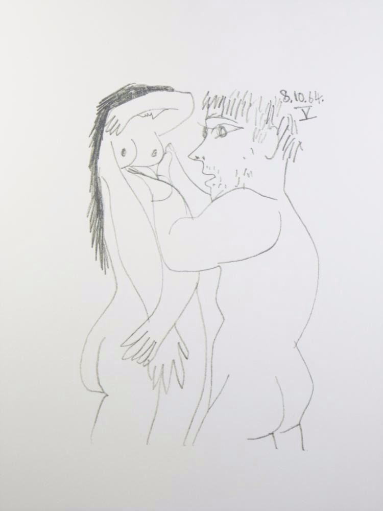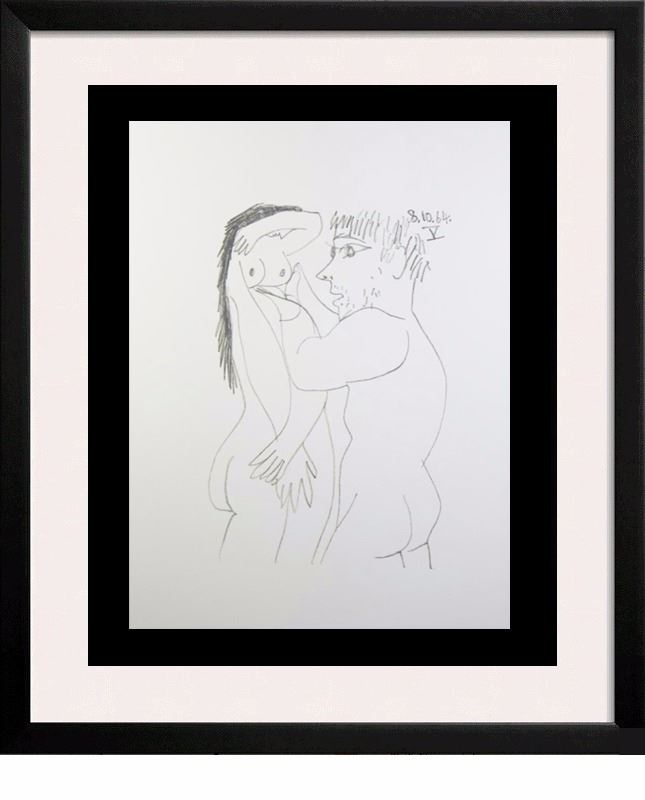 Pablo Picasso | Title Of Art: Couple Dated 8.10.64 | Edition: 506/666 | Medium: This Suite Was Printed In The Fall Of 1970 Under Supervised by Picasso. Grease Crayon, Lithograph Tusche, Lead Pencil, And Charcoal Are Among Picasso's Materials Used in Re-Creation. Taken From Picasso's Sketchbooks, And With 3 Publisher's Collaborating In Its Creation. Each Image Is Dated Respectively By The Artist According To Day, Month, And Year. Each Separate Edition Has Been Numbered From 1 To 666. They Are Printed On Handmade Pure Rag Ve'Lin D' Arches Paper. | Art Size: 20X16 | Offered Unframed. Framing Presentation are often shown for concept only. Read description: If framed, framed size will be given| Value: $ 700 |