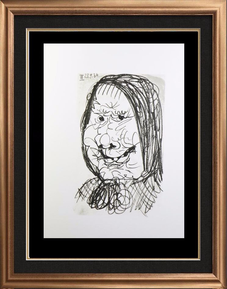 Pablo Picasso | Title Of Art: Portrait Dated 23.9.64 | Edition: 506/666 | Medium: This Suite Was Printed In The Fall Of 1970 Under Supervised by Picasso. Grease Crayon, Lithograph Tusche, Lead Pencil, And Charcoal Are Among Picasso's Materials Used in Re-Creation. Taken From Picasso's Sketchbooks, And With 3 Publisher's Collaborating In Its Creation. Each Image Is Dated Respectively By The Artist According To Day, Month, And Year. Each Separate Edition Has Been Numbered From 1 To 666. They Are Printed On Handmade Pure Rag Ve'Lin D' Arches Paper. | Art Size: 20X16 | Offered Unframed. Framing Presentation are often shown for concept only. Read description: If framed, framed size will be given| Value: $ 700 |