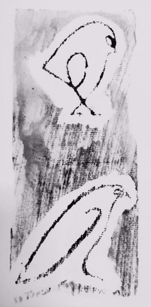 Artist Name: Pablo Picasso | Title of Art: (Plate Ten) The Chicken and the Eagle c. 1906 | Medium: High Quality Double-Sided Fine Art Book Plate | Unsigned | Image Size is Same Size as Original: Approx 8 x 4 | Paper Size 11 x 8 | Offered Unframed: Framing presentation if shown is for concept only | If you need assistance with custom framing, call the experts at ArtForSale | Circa 1955 | Published in Germany by Verlag Gerd Hatje, Stuttgart. Printed in Germany and Switzerland