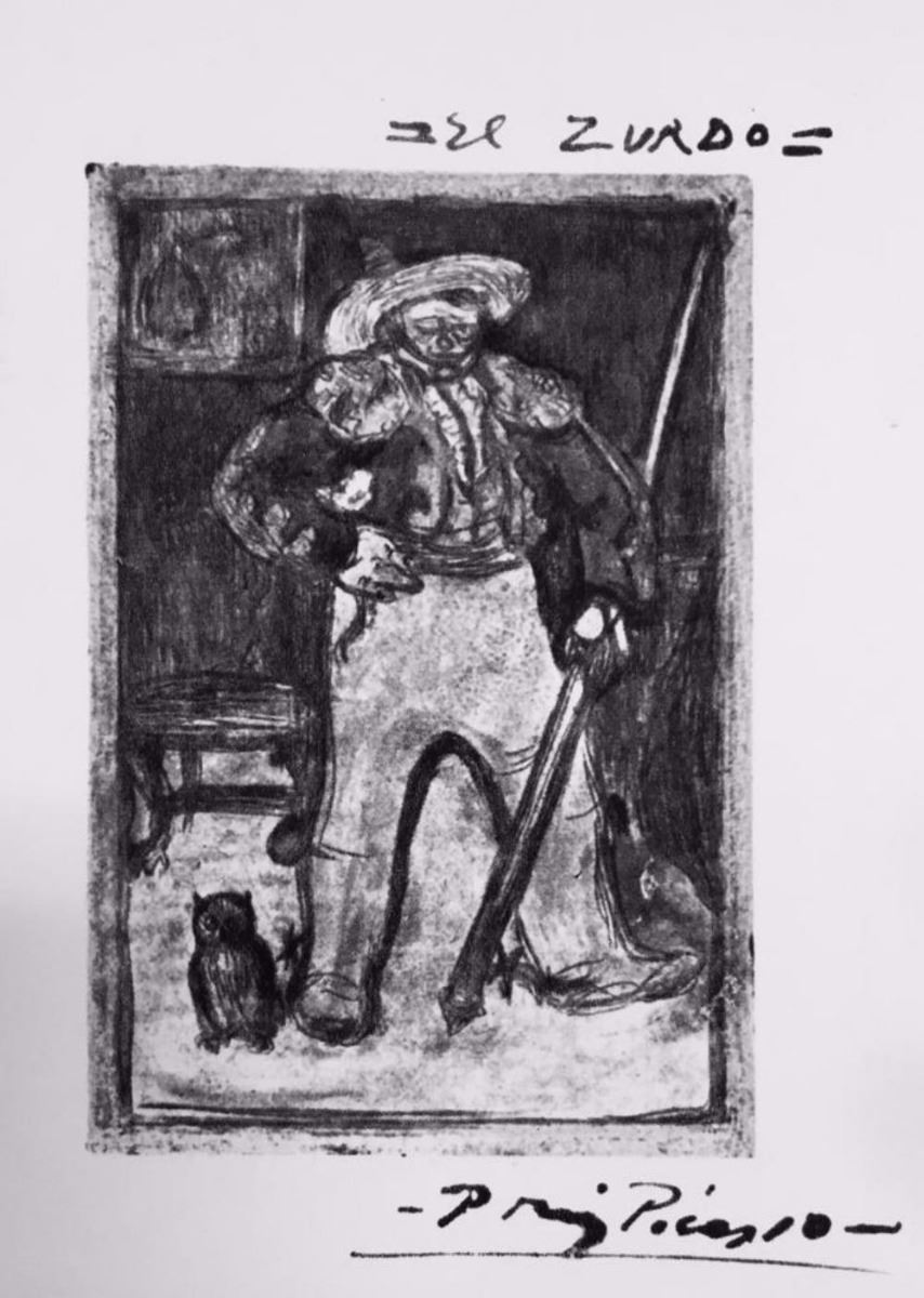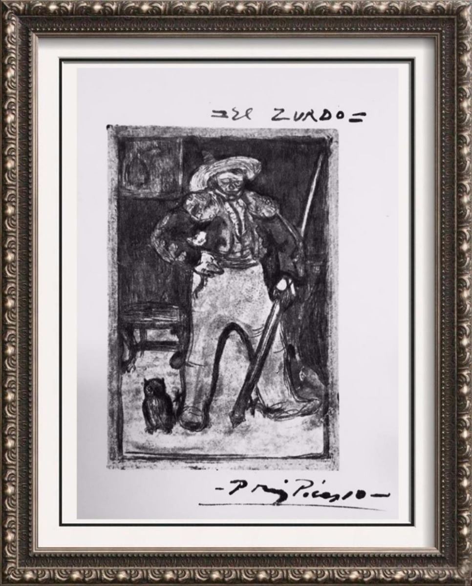 Artist Name: Pablo Picasso | Title of Art: (Plate One) The Left-Handed Man c. 1899 | Medium: High Quality Double-Sided Fine Art Book Plate | Signed in Plate | Image Size is Same Size as Original: Approx 6 x 5 | Paper Size 11 x 8 | Offered Unframed: Framing presentation if shown is for concept only | If you need assistance with custom framing, call the experts at ArtForSale | Circa 1955 | Published in Germany by Verlag Gerd Hatje, Stuttgart. Printed in Germany and Switzerland