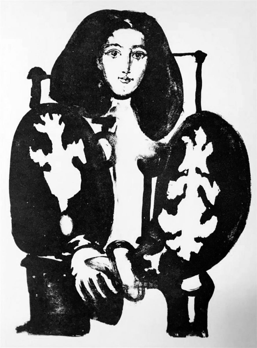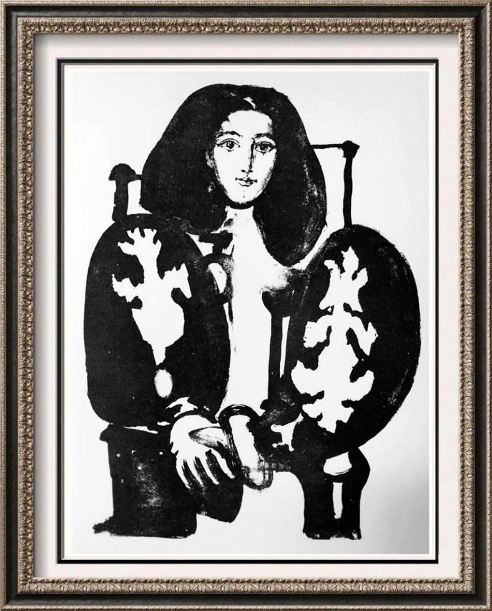 Artist Name: Pablo Picasso | Title of Art: (Plate One Hundred Forty One) Woman in an Armchair I c. 1949 | Medium: High Quality Double-Sided Fine Art Book Plate | Unsigned | Image Size: Approx 10 x 8 | Paper Size 11 x 8 | Offered Unframed: Framing presentation if shown is for concept only | If you need assistance with custom framing, call the experts at ArtForSale | Circa 1955 | Published in Germany by Verlag Gerd Hatje, Stuttgart. Printed in Germany and Switzerland