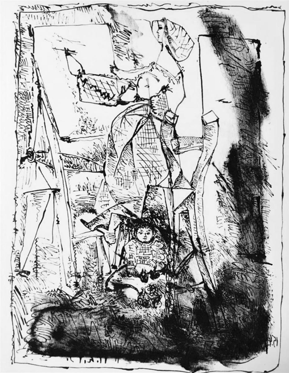 Artist Name: Pablo Picasso | Title of Art: (Plate One Hundred Forty Nine) Young Artist c. 1949 | Medium: High Quality Double-Sided Fine Art Book Plate | Unsigned | Image Size: Approx 10 x 8 | Paper Size 11 x 8 | Offered Unframed: Framing presentation if shown is for concept only | If you need assistance with custom framing, call the experts at ArtForSale | Circa 1955 | Published in Germany by Verlag Gerd Hatje, Stuttgart. Printed in Germany and Switzerland