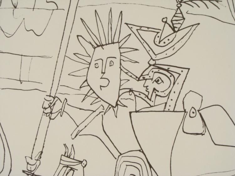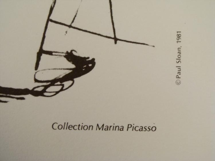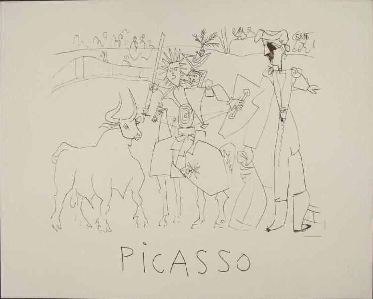 One of Picasso's most famous subjects, the bullfight, is given wild energy in this exciting print.Artist: Pablo Picasso Title: Bullfight Paper Size: 23 1/8 x 28 7/8 inches. Notes: Lithograph on rag paper