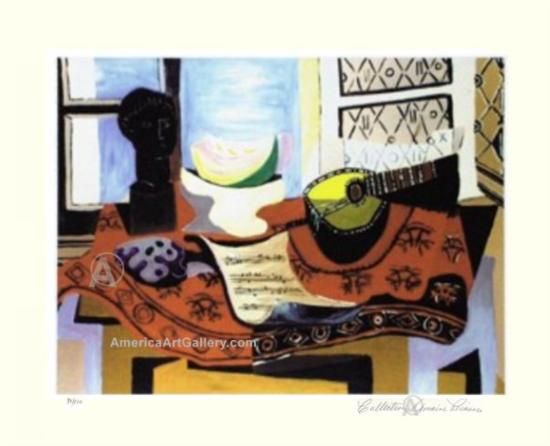OFFICIAL PABLO PICASSO COLLECTION HAND NUMBERED HAND SIGNED QUALITY APPROVED FINE ART! LIMITED EDITION HIGHEST EXCELLENT QUALITY ORIGINAL FINE ART THIS PRINT IS ABSOLUTE MINT PERFECT CONDITION!PABLO PICASSO CUBIST MANDOLIN STILL LIFE, SIGNED AND NUMBERED LIMITED EDITION FINE ART PRINT, Own it! This is an extraordinary gorgeous rare Limited Edition Picasso, a fabulous composition with an explosion of color in the Cubist style featuring the MANDOLIN STILL LIFE. Fine Art Print by the Picasso, one of the most well loved and influential artists of all time. This artwork is magnificent with brilliant rich colors and visual sweep. This is an authentic Estate Approved Limited Edition Giclee print, Hand Signed and Numbered in pencil "Collection Domain Picasso" and bearing the embossed in paper PICASSO SEAL. It is in exceptional condition. It is of the highest quality. The edition size is numbered 500. Printed on a heavy weight beautiful Arches type paper. This is not cheap reproduction, but the high quality Estate Approved Limited Edition This item retails in fine galleries framed for over $1,000.00. We are offering it to you at a very low starting price, well below the typical Gallery price! COA Certificate of Authenticity provided. This piece is a lovely addition for any Picasso art lover. Own a great art piece at an affordable price. This is your chance to own this excellent art print from one of todays most collectable artists at a exceptionally affordable price. Buy from us with confidence! Features amazing exciting color tones in deep rich hues on this print, excellent! This elegant striking piece would make a splendid impression and fantastic statement anywhere. Features incomparable colorations and beautiful lines on this print. Made of the very Finest Archival Museum quality Paper and in excellent NEW MINT CONDITION is Highly desirable for collectors. This item retails in some Upscale Art Galleries and Museum galleries framed for over $1,000.00 when it can be found. This Picasso would be perfect for any elegant home, office, restaurant or place of business. We carry thousands of the finest quality Art works in our inventory. ARTIST INFORMATION: PABLO PICASSO (1881-1973) Pablo Picasso is recognized as one of the most significant, important and critically acclaimed artists of the 20th century. Picasso is considered the master of 20th-century art, Picasso exploded the conventional art boundaries and discovered new dimensions for his prolific diverse talents. Picasso was born on October 25, 1881, in Malaga, Spain, son of an artist, Jose Ruiz, and Maria Picasso. Rather than adopt the common name Ruiz, the young Picasso took the rarer name of his mother. Picasso was an artistic prodigy by the age of 15. Picasso was technically skilled in drawing and painting at an early age, and by late 1906 had begun painting in a revolutionary manner. Inspired by Paul Cézanne. Spanish painter, sculptor, graphic artist, and ceramicist who worked in France, a leader of the School of Paris, he was outstanding for his technical virtuosity, unbelievable originality, and prolificacy. His enormous body of work spans so many years that art experts tend to separate his career into distinct phases, such as the Blue Period, the Rose Period and his most famous contribution to modern art, Cubism. Picasso, unlike so many before him, was an international celebrity as well as an important contributor to the world of art. The Blue Period of Picasso lasted from about 1900 to 1904. It is characterized by the use of different shades of blue. During Picasso's Rose Period from about 1905 to 1906, his style moved away from the Blue Period to a friendly pink tone. He changed art profoundly in the 20th century. Picasso died on April 8, 1973 at his home, Notre-Dame-de-Vie in Mougin, France at the age of 91. He was buried on April 10 at his castle Vauvenagues. Picasso ?s works are highly sought after by museums and art collectors worldwide. Picasso is widely considered as one of the undisputed greatest artists of the 20th century. EXCELLENT HIGHEST QUALITY ORIGINAL FINE ART PRINT! We Ship Internationally. Please contact us for details.