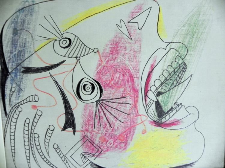 Artist: Pablo Picasso (Guernica)Title: Double HeadMedium: Colored lithograph sketchSignature: In plateDate: 1937, in plateImage size: 9" x 11"Overall size: 24" x 15 1/2"Publisher: Spadem et Heritiers De PicassoAuthentication Seal: Stamped on backCondition: Very good; creased up left corner on matting*Large and authentic Spadem et Heritiers De Picasso lithographic plates after a hand drawing composition by Pablo Picasso of Guernica, pencil sketch from 193, chosen to be published by the Picasso Museum, never been offered as a lithograph of available to own as a piece of artwork until this limited edition printing was createdBiographyPicasso was a Spanish painter, draughtsman, and sculptor. He is one of the most recognized figures in 20th-century art. He is best known for co-founding the Cubist movement and for the wide variety of styles embodied in his work. Picasso demonstrated uncanny artistic talent in his early years, painting in a realistic manner through his childhood and adolescence; during the first decade of the twentieth century his style changed as he experimented with different theories, techniques, and ideas. Picasso creativity manifested itself in numerous mediums, including oil paintings, sculpture, drawing, and architecture. His revolutionary artistic accomplishments brought him universal renown and immense fortunes throughout his life, making him the best-known figure in twentieth century art.*Information from the artist's website: http://www.pablopicasso.org/
