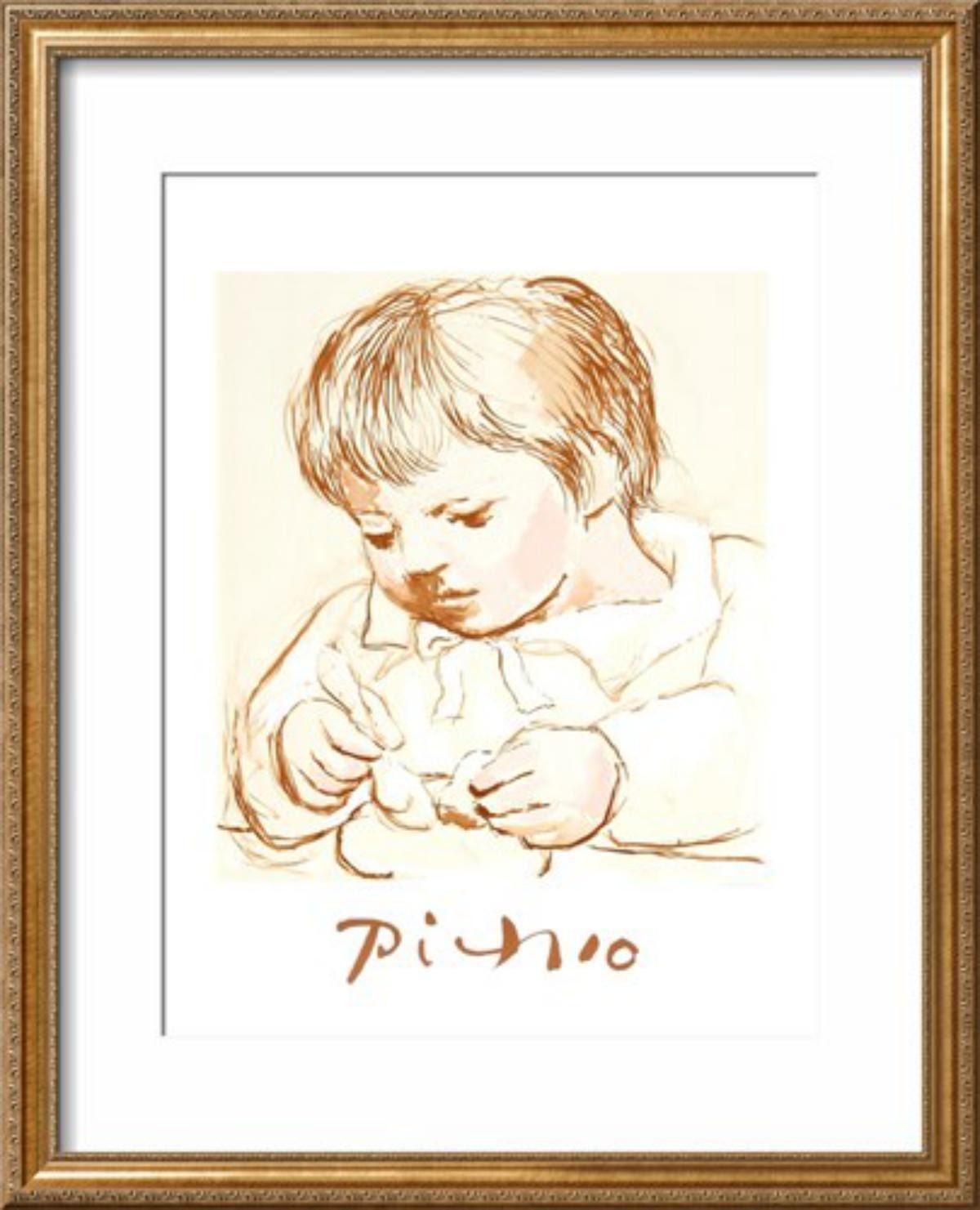Artist: Pablo Picasso. Title: Enfant Deieunant. Medium: Lithograph. Size: 33 x 41 inch. The works of art in this collection were selected from the personal collection inherited by Marina Picasso, Pablo Picasso's granddaughter. After Pablo Picasso's death in 1973, his granddaughter Marina authorized the printing of these original lithographs, which have come to be known as the Picasso Estate Collection. The lithographs were meticulously created after the original works (oil paintings, watercolors, pastels, and charcoal drawings) by Master Chromist Marcel Salinas, who worked closely with Picasso in his lifetime. They are printed in an edition of 1000 on first-quality paper. Years of publication: 1979-1982. Printer: Laurent Marcel Salinas Publisher: Estate of Picasso (Marina Picasso), with Estate-approved Picasso signature printed below image. It also has in typeset under image, Collection Marina Picasso, and the copyright info in typeset on the right of image. Certificate of authenticity included.