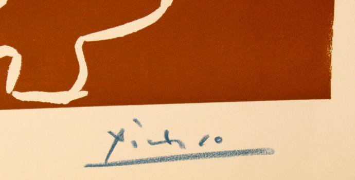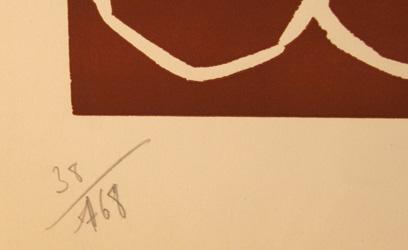 Medium: Linocut on Arches, signed in blue pencil and numbered in pencil
