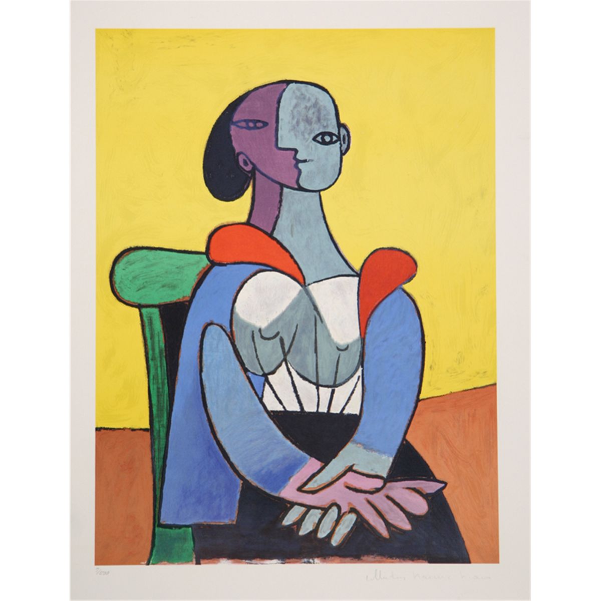 Pablo Picasso, Femme A La Chaise Sur Fond Jaune, 9-C, Lithograph