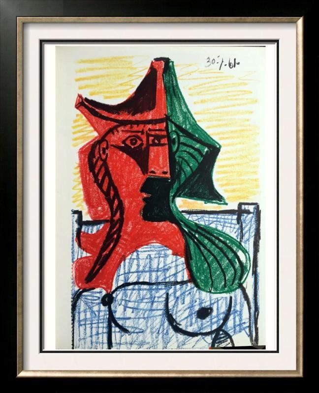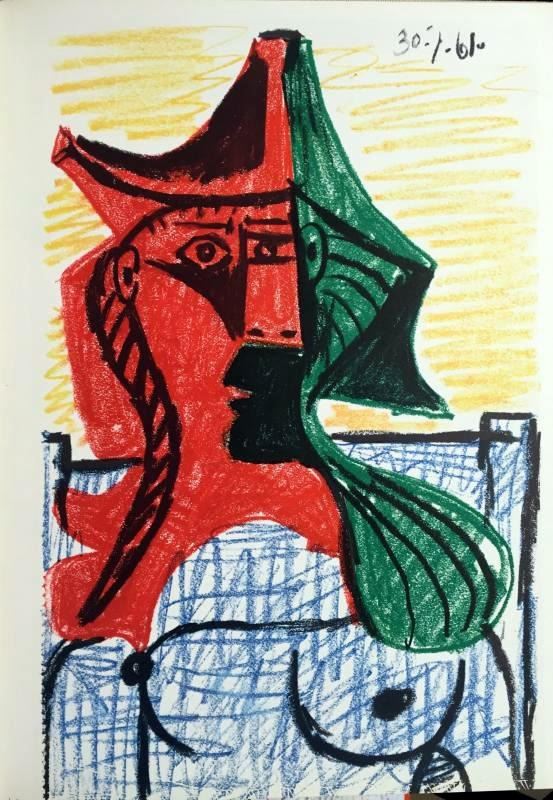 Pablo Picasso | Title of Art: Full Color Print # 62132 | Medium: Fine Art Book Plate, Published 1963 Editions Cercle d'Art, Paris. Reproductions printed in France | Edition #: N/A | Unframed Size: 9 x 14 | Framed Size: Offered Unframed. Book plates may be double sided and on some occasion plate no. listed below image Framing presentation is for concept only. If you need assistance with custom framing, call the experts at ArtForSale.