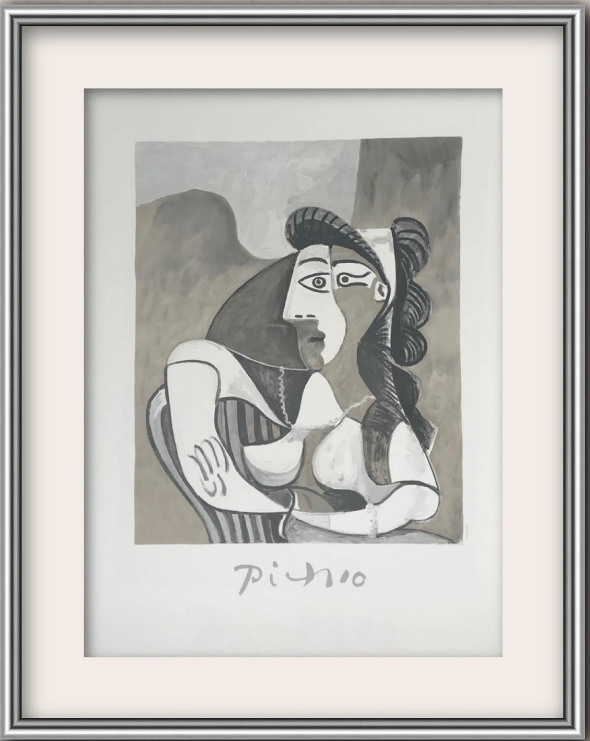 Artist: Pablo Picasso. Medium: Lithograph on Arches Paper. Title: Femme Accoudee au Fauteuil. Size (Unframed): 29" x 22". Size (Framed): 40" x 30". Certificate of Authenticity: Is included. Additional: Portfolio: Marina Picasso Estate Lithograph Collection. Printer: Laurent Marcel Salinas (Chromist). Date: of Original: 1962 | Year Printed: 1979-1982. Publisher: Estate of Picasso (Marina Picasso). Reference# 12804.