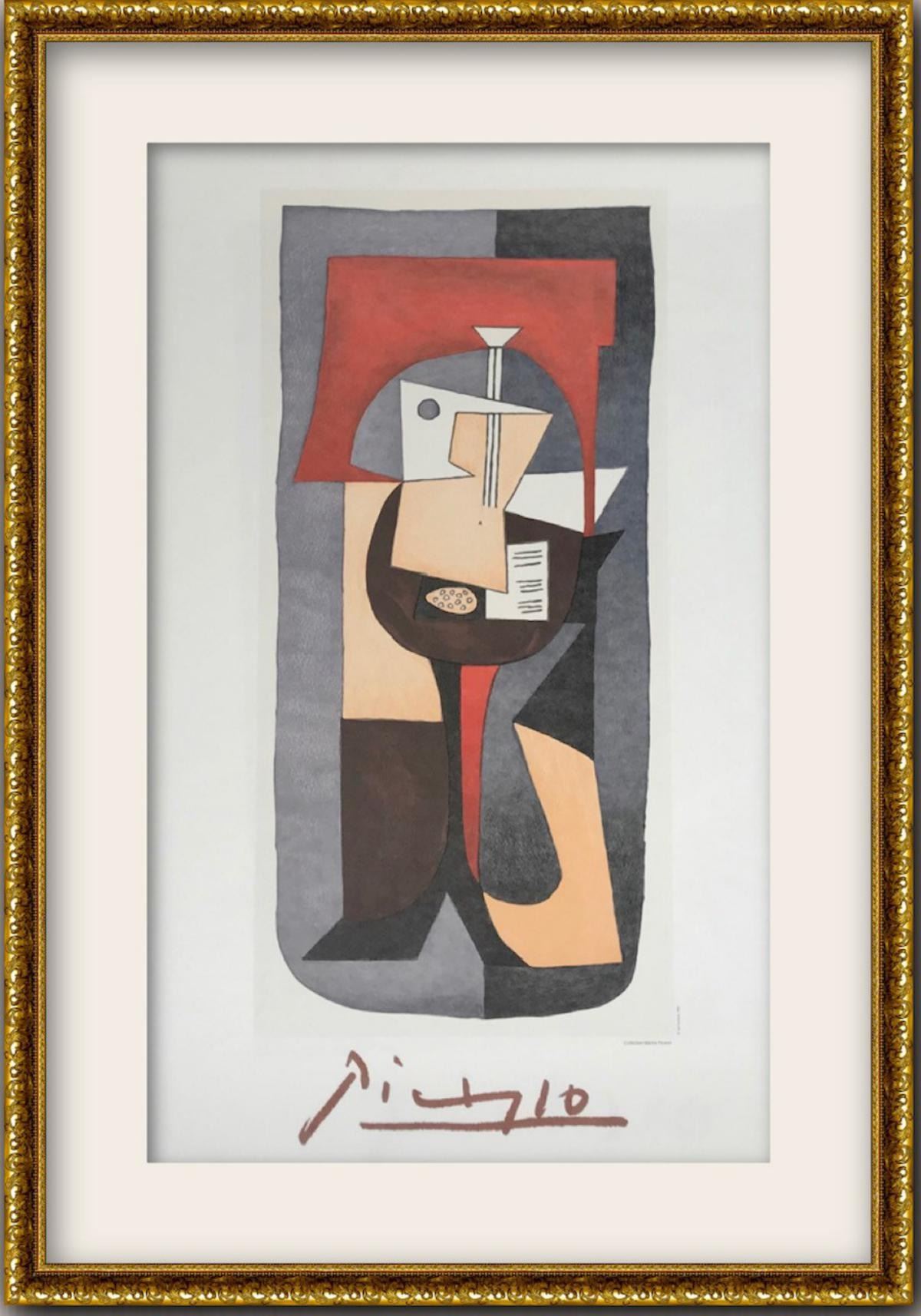 Artist: Pablo Picasso. Medium: Lithograph on Arches Paper. Title: Guitare et Partition. Size (Unframed): 29" x 22". Measures approx. (Framed): 40" x 30". Certificate of Authenticity: Is included. Additional: Portfolio: Marina Picasso Estate Lithograph Collection. Printer: Laurent Marcel Salinas (Chromist). Date: of Original: 1920 | Year Printed: 1979-1982. Publisher: Estate of Picasso (Marina Picasso). Reference# 12798.