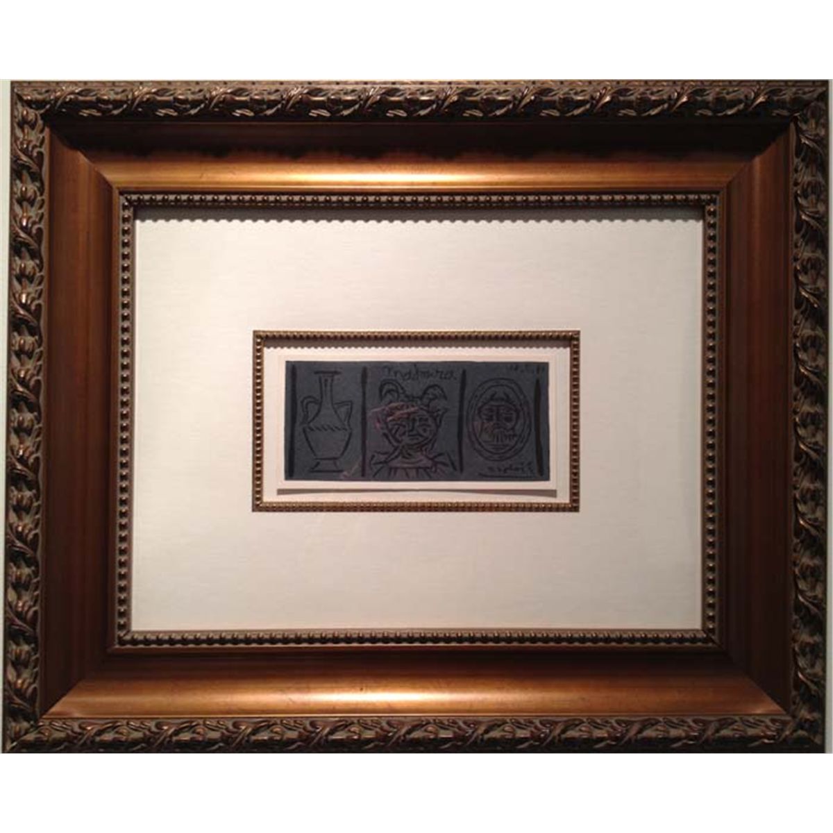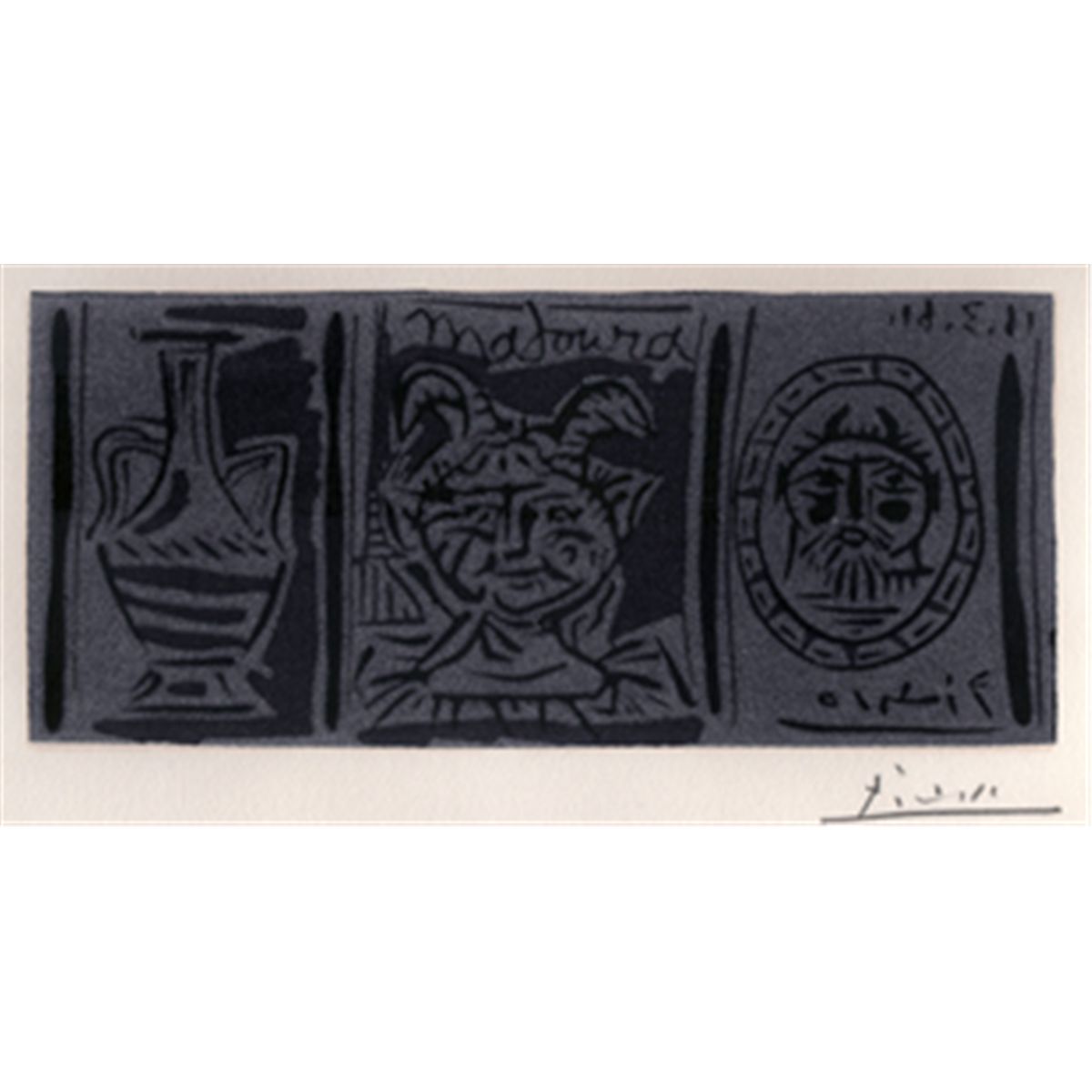 1961, Linocut, 4.5” x 9”, Framed, PICA1155C. please note that the Linocut illustrated in the frame is the piece being sold. It is identical to the work illustrated in the first photograph, however it is not a pencil signed impression.