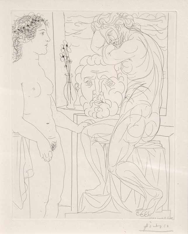 Pablo Picasso, Nude Model and Sculptures, Etching