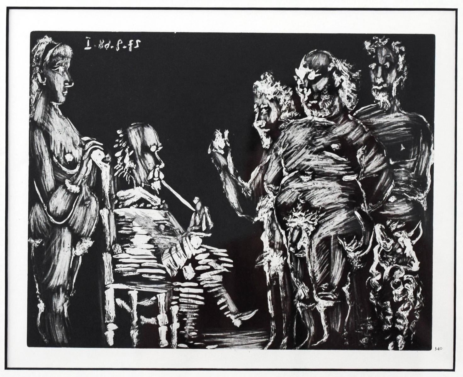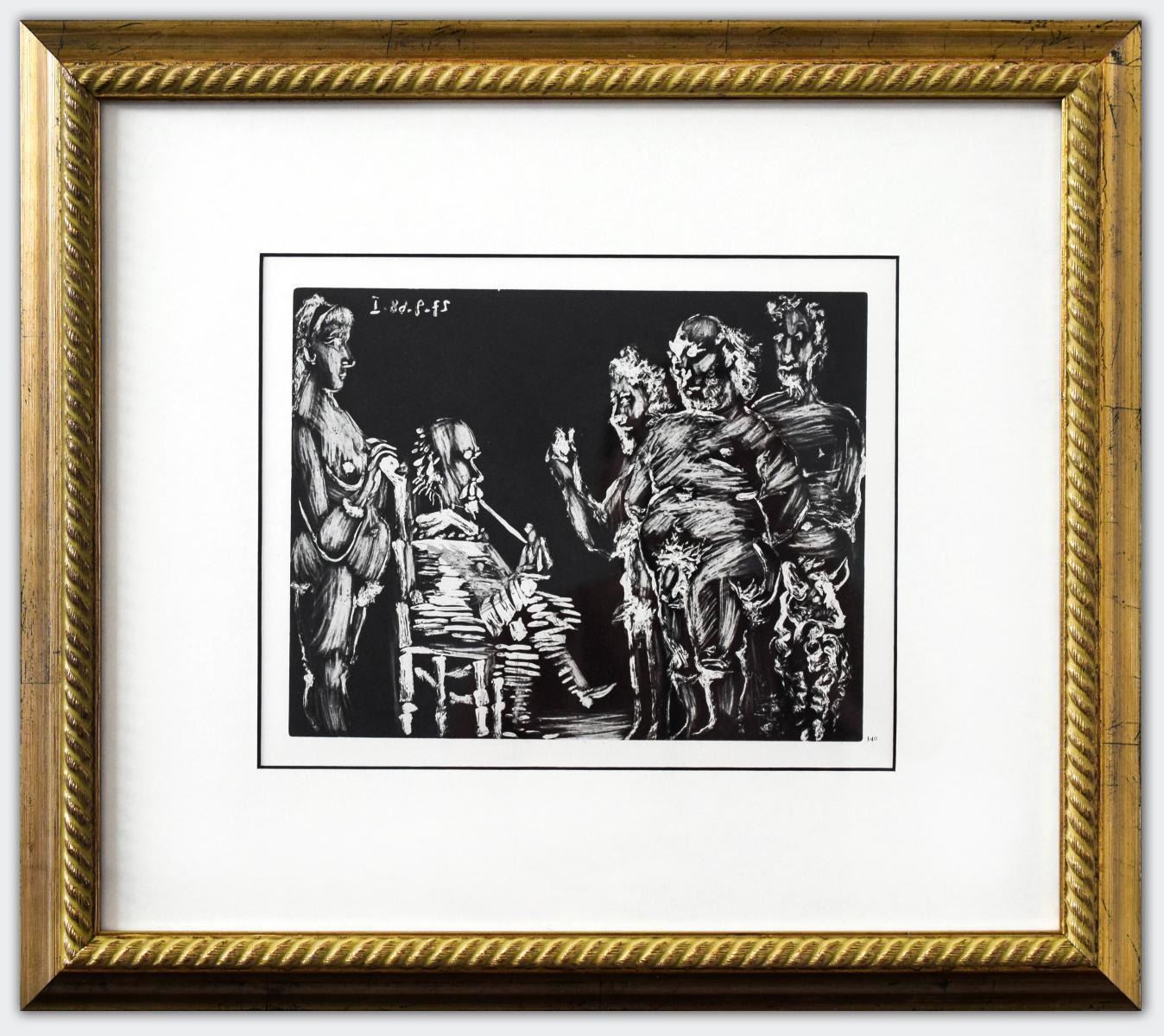 Artist: Pablo Picasso. Medium: Offset Lithograph. Title: From The 347 Series. Size (Unframed): 9" x 11". Additional: Custom framed. Unsigned and unnumbered. The 347 Series is a series of Gravures by the Spanish artist Pablo Picasso executed between March 16 and October 8 1968. The work was Picasso's largest in terms of the number of individual prints in the series. It was dedicated to his friend Jamie Sabartes. No name was given by Picasso to the series. The 347 series was first displayed at the Art Institute of Chicago and Paris's Gallerie Lousie Leris in 1970.This framed reproduction of an original gravure in the series was published by Random House inc in the USA and printed in Switzerland.. Reference# 16012.