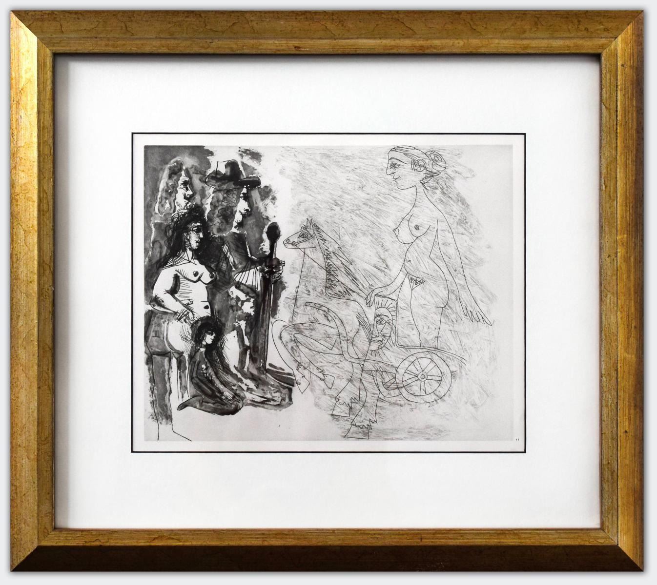 Artist: Pablo Picasso. Medium: Offset Lithograph. Title: From The 347 Series. Size (Unframed): 11" x 14". Size (Framed): 20" x 23". Additional: Custom framed. Unsigned and unnumbered. The 347 Series is a series of Gravures by the Spanish artist Pablo Picasso executed between March 16 and October 8 1968. The work was Picasso's largest in terms of the number of individual prints in the series. It was dedicated to his friend Jamie Sabartes. No name was given by Picasso to the series. The 347 series was first displayed at the Art Institute of Chicago and Paris's Gallerie Lousie Leris in 1970.This framed reproduction of an original gravure in the series was published by Random House inc in the USA and printed in Switzerland.. Reference# 16008.