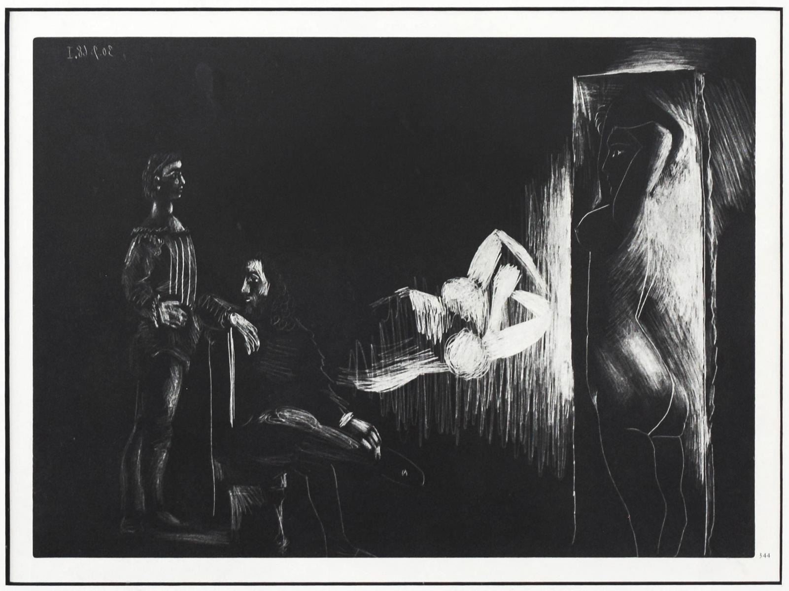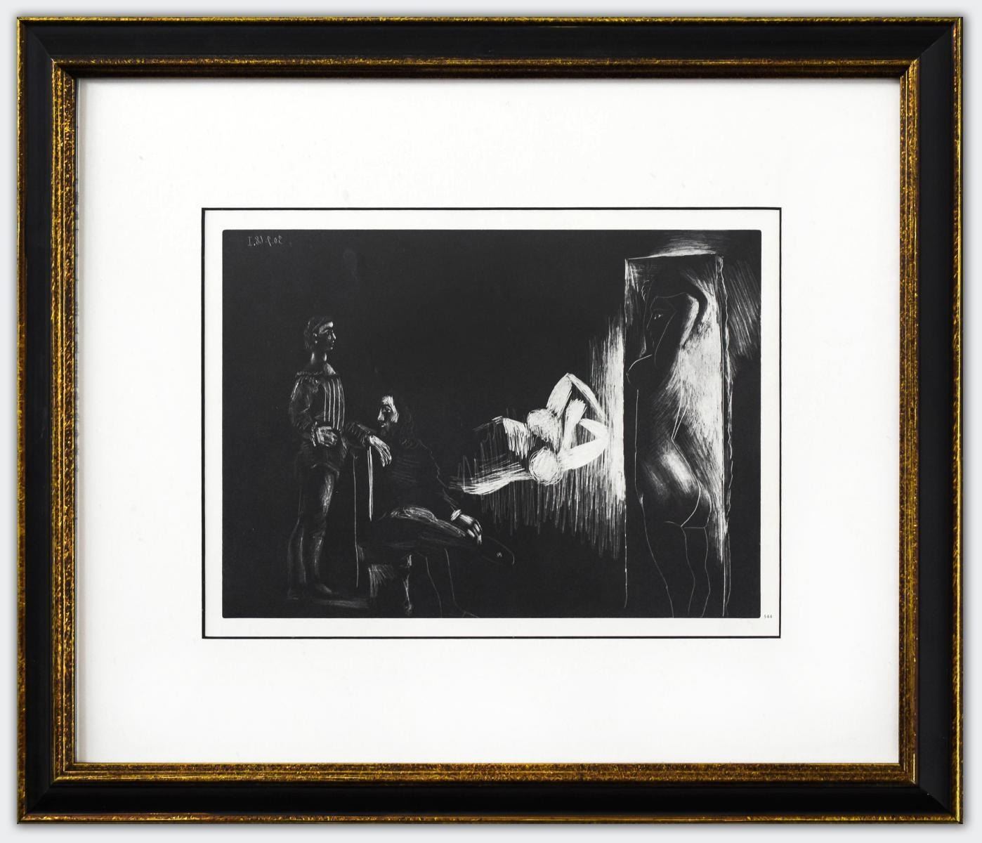 Artist: Pablo Picasso. Medium: Offset Lithograph. Title: From The 347 Series. Size (Unframed): 9" x 13". Size (Framed): 19" x 22". Additional: Custom framed. Unsigned and unnumbered. The 347 Series is a series of Gravures by the Spanish artist Pablo Picasso executed between March 16 and October 8 1968. The work was Picasso's largest in terms of the number of individual prints in the series. It was dedicated to his friend Jamie Sabartes. No name was given by Picasso to the series. The 347 series was first displayed at the Art Institute of Chicago and Paris's Gallerie Lousie Leris in 1970.This framed reproduction of an original gravure in the series was published by Random House inc in the USA and printed in Switzerland.. Reference# 16027.